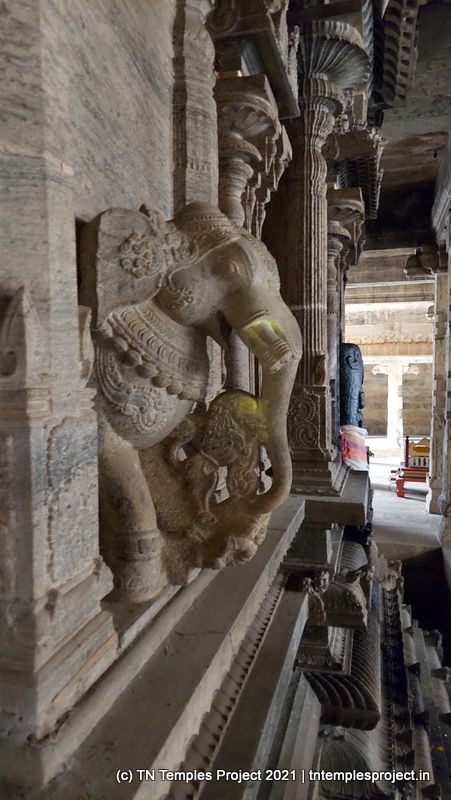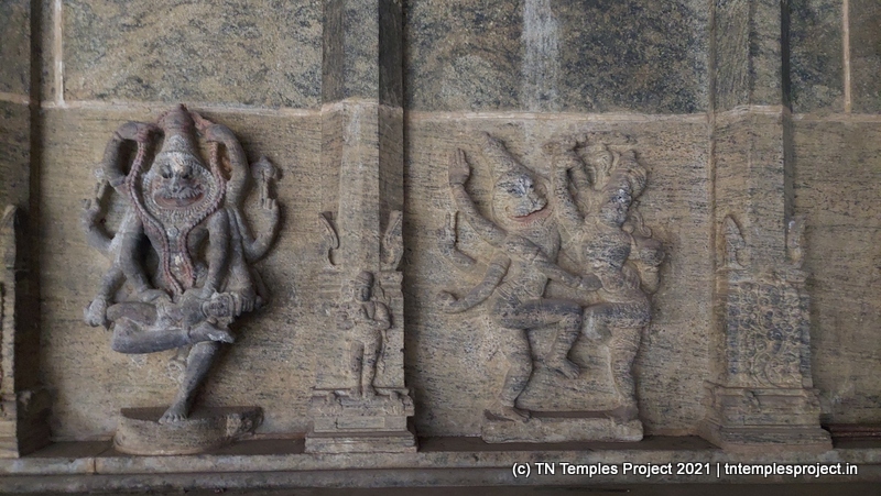 பைரவரின் சித்தரிப்புக்கு கூடுதலாக, கோயிலில் தலைசிறந்த அல்லது தனித்துவமான கைவினைத்திறனின் சில அற்புதமான எடுத்துக்காட்டுகள் உள்ளன. கோஷ்டத்தில் தட்சிணாமூர்த்தி ஒரு கிரீடத்துடன் சித்தரிக்கப்படுகிறார், இது மிகவும் அசாதாரணமானது. மண்டபத்தில் உள்ள ஒரு தூணில் குட்டி விநாயகர் என்ற ஒரு சிறிய விநாயகர் சிற்பம் உள்ளது, அவர் சுமார் 1 அல்லது 1.5 அங்குலம் உயரம் கொண்டவர், ஆனால் அழகாகவும் தெளிவாகவும் சித்தரிக்கப்படுகிறார். கர்ப்பக்கிரகம் கோஷ்டத்தின் தெற்குப் பகுதியில் இதேபோன்ற பிற அற்புதமான மினியேச்சர் சிலைகள் உள்ளன, அதில் விநாயகர், ஒரு வயதான பெண்மணி நடைபயிற்சி கைத்தடியுடன், காமதேனு ஒரு சிவலிங்கத்தின் மீது பால் ஊற்றுவது போன்ற காட்சிகள் உள்ளன – இவை ஒவ்வொன்றும் 2 அங்குலத்திற்கும் குறைவான உயரம்!