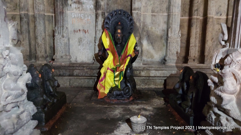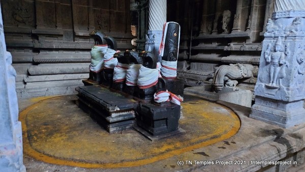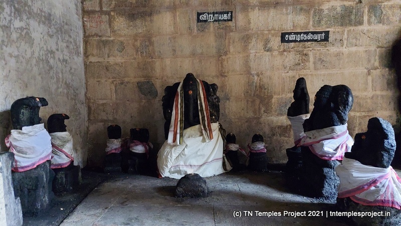 கோஷ்டத்தில் விநாயகர், தட்சிணாமூர்த்தி, லிங்கோத்பவர், பிரம்மா மற்றும் துர்க்கை உள்ளனர். உள் பிரகாரத்தில் விநாயகர், பெருமாள், முருகன் தனது துணைவியார்களான வள்ளி மற்றும் தெய்வானையுடன், சண்டிகேஸ்வரர், கஜலட்சுமி, சனி, தனி பைரவர், சந்திரன் மற்றும் சூரியன் ஆகியோருக்கு சன்னதிகள் உள்ளன. தனி நவக்கிரக சன்னதி உள்ளது. நடராஜர் சன்னதியும் அழகாக அலங்கரிக்கப்பட்டுள்ளது.