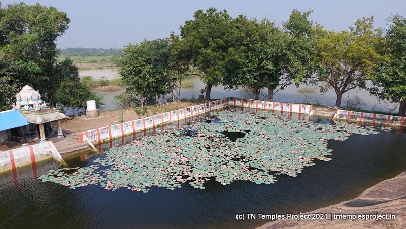 படிகளில் ஏறும்போது, இடதுபுறத்தில் ஒரு தாமரை குளம், வலதுபுறத்தில் ஒரு சிறிய ஏரி உள்ளது. தாமரை குளம் உண்மையில் கீழே உள்ள விநாயகர் கோயிலுக்கு சொந்தமானது.