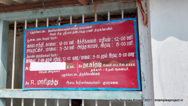 முருகனின் இருப்பை நம்பிய மன்னர், இன்றுள்ள கோயிலைக் கட்ட உதவினார். சேதுபதியின் விருப்பமான வழிபாட்டுத் தலம் பழனி என்பதால், இந்தக் கோயில் பழனி முருகன் கோயிலின் ஒட்டுமொத்த வடிவமைப்பிலேயே கட்டப்பட்டது.