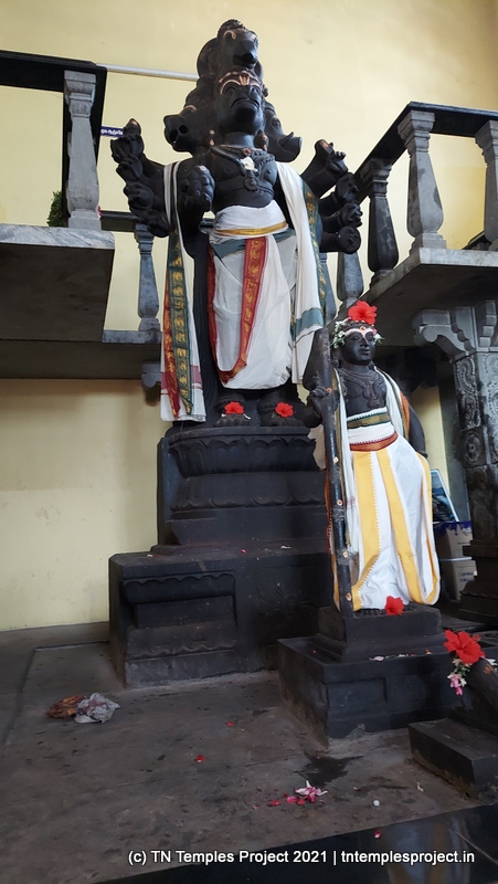 பிரகாரத்தில் மற்ற தெய்வங்கள் உள்ளன, ஆனால் அவற்றில் மிகவும் குறிப்பிடத்தக்கவை மூன்று பெரிய விக்ரஹங்கள் – பஞ்ச முக சங்கட ஹர ஹேரம்ப மகா கணபதி, 18 கைகளுடன் சித்தரிக்கப்பட்ட மகா துர்க்கை மற்றும் பஞ்ச முக ஆஞ்சநேயர். பஞ்ச முக ஆஞ்சநேயர் ஐந்து வெவ்வேறு முகங்களுடன் சித்தரிக்கப்படுகிறார் – ஹனுமான் (குரங்கு), யானை, நரசிம்மர், கருடன் மற்றும் வராஹா (பன்றி).