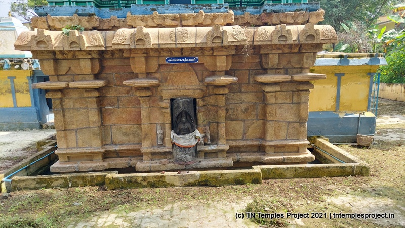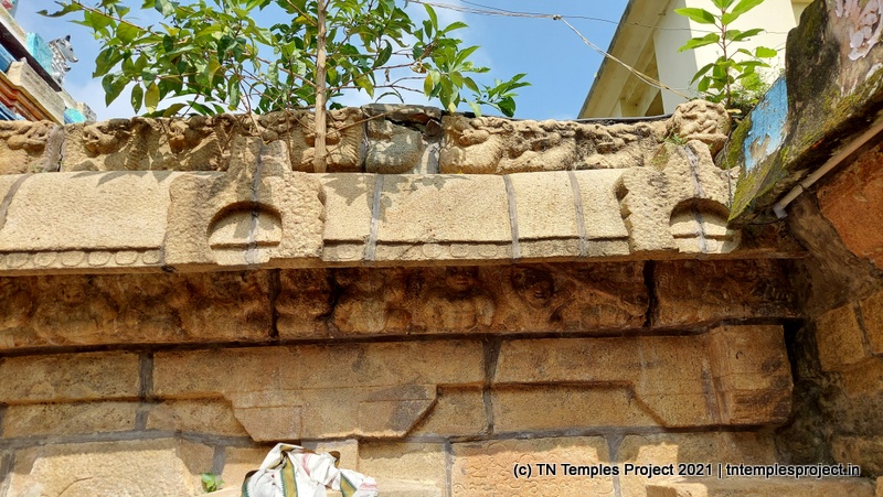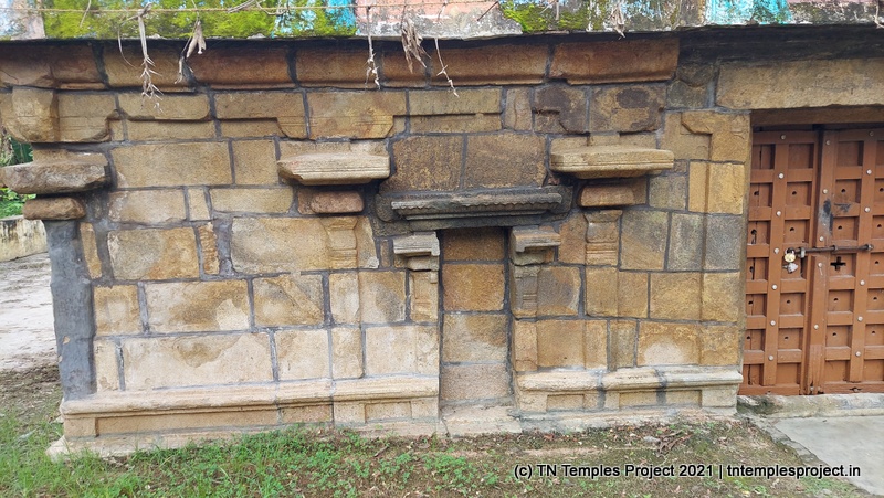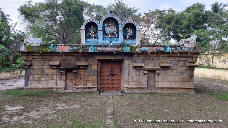நேராக முன்னால் மகா மண்டபம் மற்றும் கர்ப்பகிரஹம் உள்ளது, ஆனால் இவை சாதாரண தரை மட்டத்திற்கு கீழே இருப்பது போல் தெரிகிறது – இது கோவில் பகுதியின் மற்ற பகுதிகளில் தரைமட்டத்தை அதிகரிப்பதன் காரணமாக இருக்கலாம். இப்பகுதியில் உள்ள பல பழைய சோழர் கோயில்களைப் போலவே, கோயிலின் கீழ் பகுதி கிரானைட்டாலும், மேல் பகுதி செங்கல், மண் மற்றும் சாந்து ஆகியவற்றால் ஆனது.