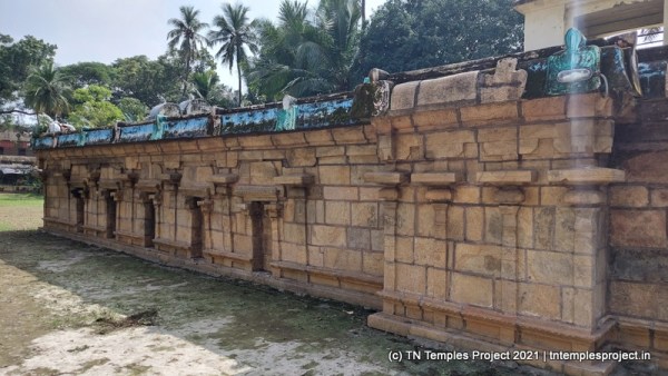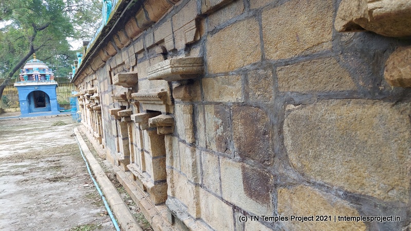 மகா மண்டபத்தின் வெளிப்புறச் சுவர் முழுவதும் வெற்று கோஷ்டங்கள் மட்டுமே உள்ளன, மேலும் இங்குள்ள கட்டிடக்கலை கூட மிகவும் அடிப்படையானது, ஆனால் பழமையானது. எனவே, இக்கோயில் முதன்முதலில் கட்டப்பட்ட காலத்திற்கான கூடுதல் சான்றுகளை இது வழங்குவதாகத் தெரிகிறது. விமானம் முழுவதும் கல்லால் ஆனது, ஆனால் ஆரம்ப கால இடைக்கால சோழர் கோயிலாக இருப்பதால், அதில் குறிப்பிடத்தக்க படங்கள் மற்றும் சிற்ப வேலைகள் இல்லை. கர்ப்பகிரஹத்தின் வெளிப்புறச் சுவரில் சிவனை வழிபடும் செம்பியன் மாதேவியின் அழகிய சிற்பம் உள்ளது.