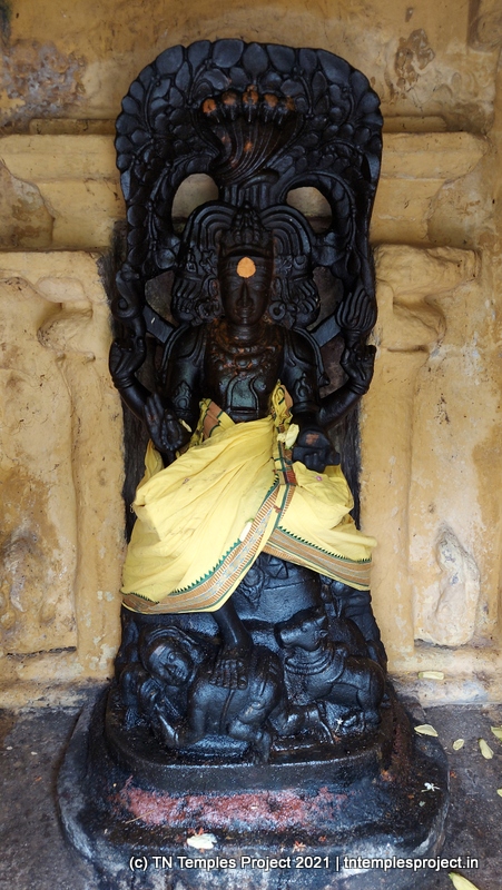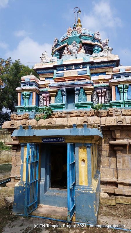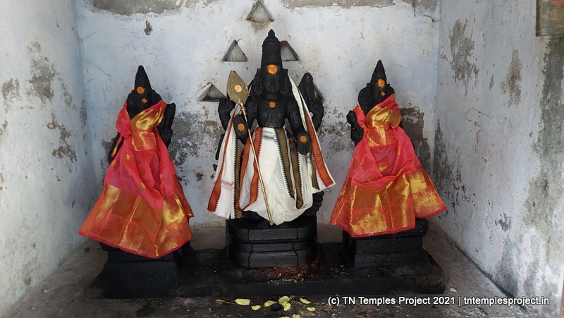 கோஷ்டத்தில் அமர்ந்துள்ள விநாயகர் (நர்தன விநாயகர் அல்ல), தட்சிணாமூர்த்தி, தனி மற்றும் மூடப்பட்ட சன்னதியில் (அழகான, அசல் இல்லாவிட்டாலும், தட்சிணாமூர்த்தியின் விக்கிரகத்துடன்), லிங்கோத்பவர், பிரம்மா மற்றும் துர்க்கை ஆகியோர் உள்ளனர். இவற்றில், பரிவார தெய்வங்கள் இல்லாத போதிலும், கோஷ்டத்தில் உள்ள துர்க்கை அருகிலுள்ள திருப்புள்ளமங்கையில் உள்ளதைப் போலவே சித்தரிக்கப்படுகிறார். பிரகாரத்தில் விநாயகர், முருகன், வள்ளி, தெய்வானையுடன் சண்டிகேஸ்வரர் உள்ளனர். இக்கோயிலில் நவக்கிரகம் சன்னதி இல்லை.