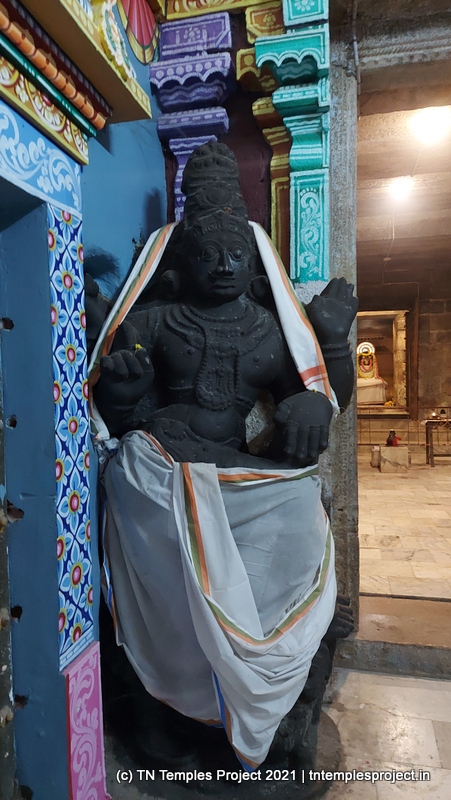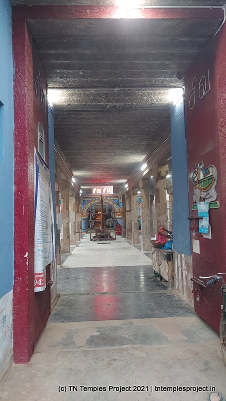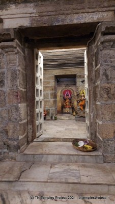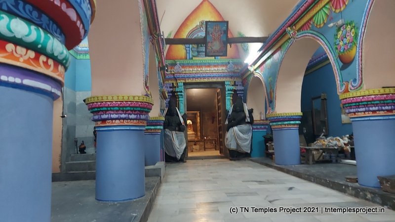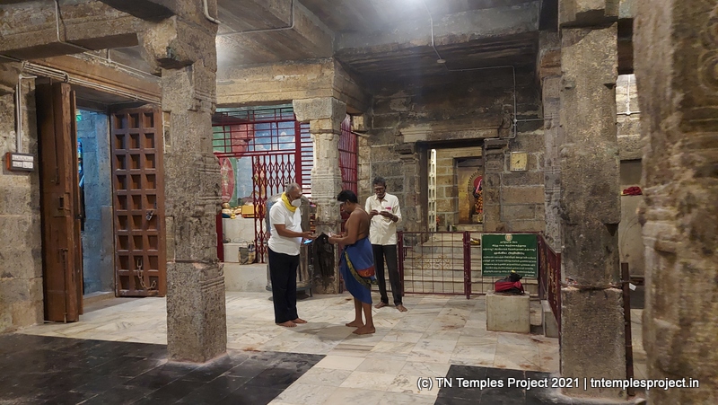கோயில் மேற்கு நோக்கி உள்ளது, ஒரு யாளியும் வைக்கப்பட்டுள்ள நுழைவாயிலிலிருந்தே மூலவர் லிங்கத்தின் தெளிவான காட்சியைப் பெறலாம். இரண்டு பெரிய துவாரபாலகர்கள் மகா மண்டபத்தின் நுழைவாயிலில் காவலாக உள்ளனர், அதன் உள்ளே மூலவர் மற்றும் அம்மன் சன்னதிகள் உள்ளன. அம்மன் சன்னதியில் தனி நந்தியுடன் தெற்கு நோக்கிய தனி நுழைவாயில் உள்ளது. இது பாண்டிய செல்வாக்கைக் குறிக்கிறது,. நந்தியிலிருந்து மகா மண்டபம் வரையிலான நடைபாதையில் குபேர விக்ரஹம் உள்ளது.