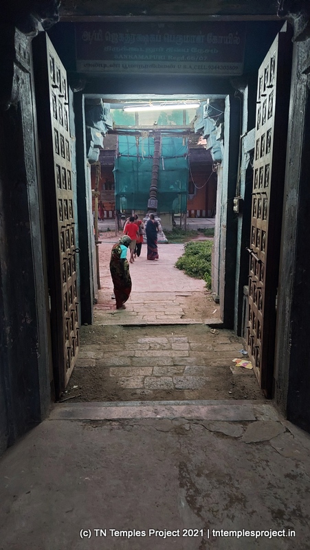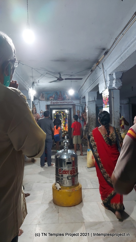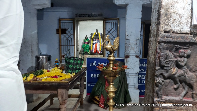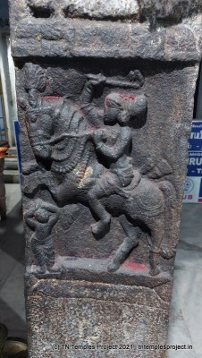 Several centuries after the temple was built, floods in the river Kaveri damaged a large portion of the temple. Rani Mangammal was a queen regent of Madurai during the Nayak period, in the 17th century CE. Vishnu is believed to have appeared in the queen’s dream, ordering her to renovate this temple. The queen undertook the renovation, and even recovered idols that had been washed away in the river’s waters. This renovation also included the construction of the temple chariot – the Ambarisha Ratham – which was used till the 1940s. As a mark of reverence to this great queen, the temple has images of Rani Mangammal and her ministers who were involved in the restoration efforts.