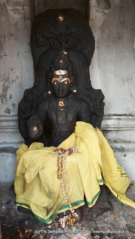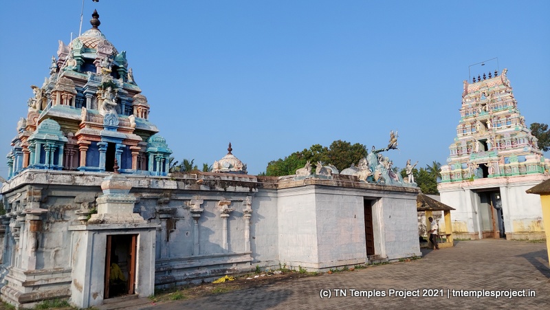 இங்கு த்வஜஸ்தம்பம் இல்லை, மேலும் ஒரு சிறிய மண்டபத்தில் பலி பீடம் மற்றும் நந்தி ஆகிய இரண்டும் உள்ளன. இதற்கு அப்பால் கர்ப்பக்கிரகம் மற்றும் அம்மன் சன்னதியை உள்ளடக்கிய மகா மண்டபம் உள்ளது. சுவாரஸ்யமாக, அம்மனுக்கு தெற்கில் தனி நந்தி உள்ளது. இது கோயிலின் அமைப்பு மற்றும் உருவப்படத்தில் சில பாண்டியர்களின் செல்வாக்கைக் குறிக்கிறது.