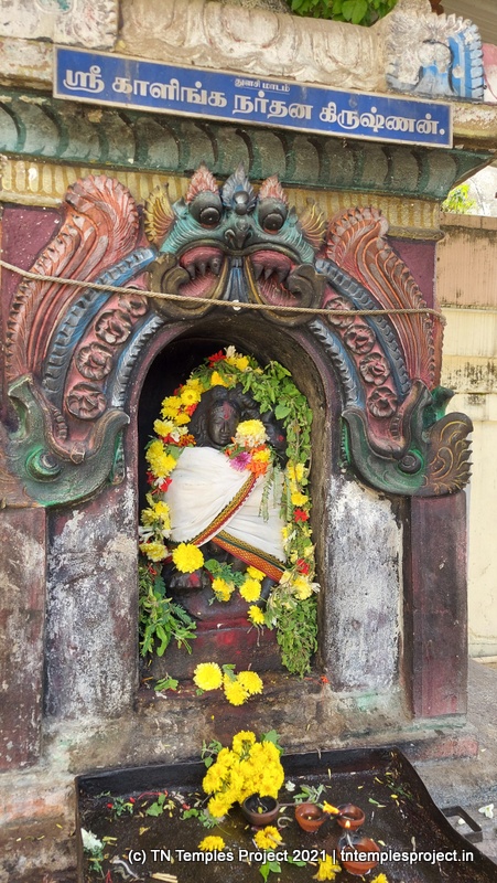 வெளிப் பிரகாரத்தைச் சுற்றி வரும்போது, விஜயவல்லி தாயார் சந்நிதிக்கு எதிரே கலிங்க நர்த்தன கிருஷ்ணன் சன்னதி உள்ளது, அதுவும் சில படிகள் உயரத்தில் உள்ளது. தாயாரின் மூன்று சக்தி வடிவங்கள் கர்ப்பக்கிரஹம் கோஷ்டங்களில் உள்ளன.