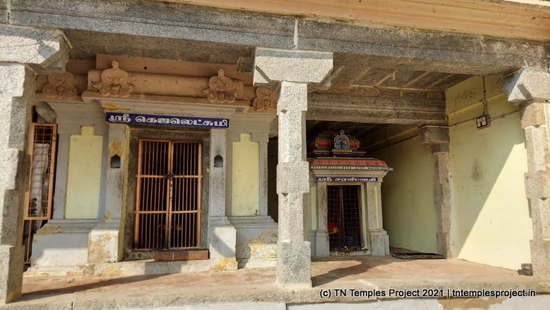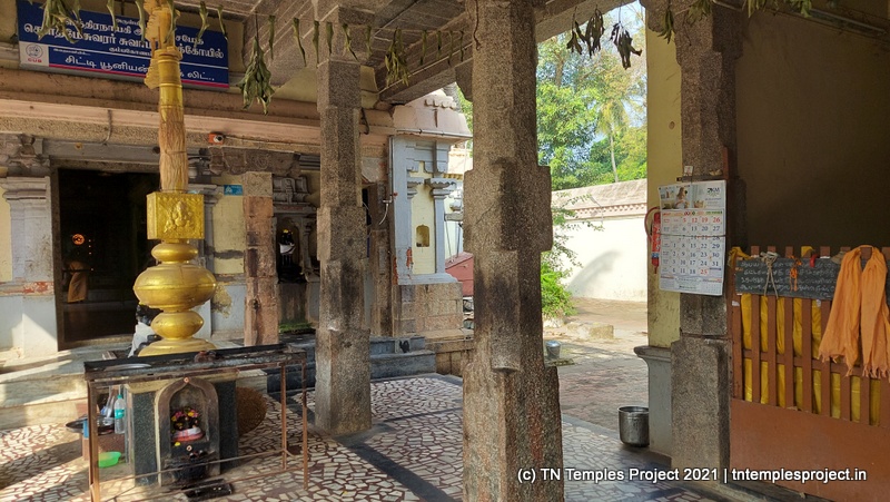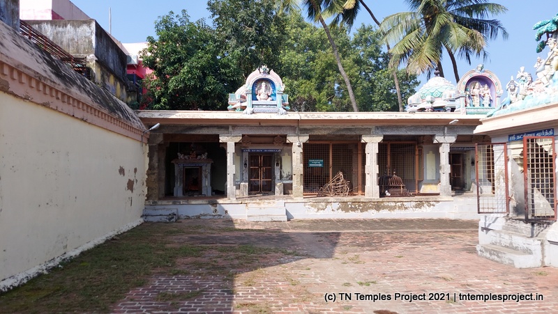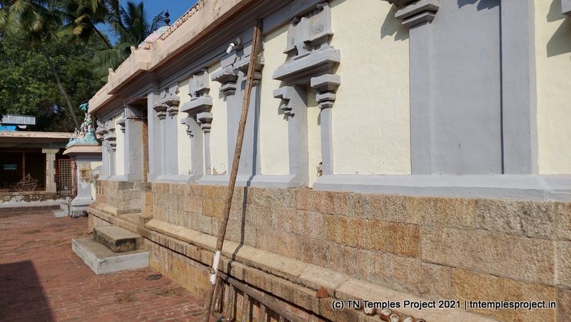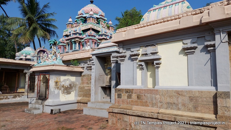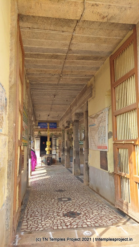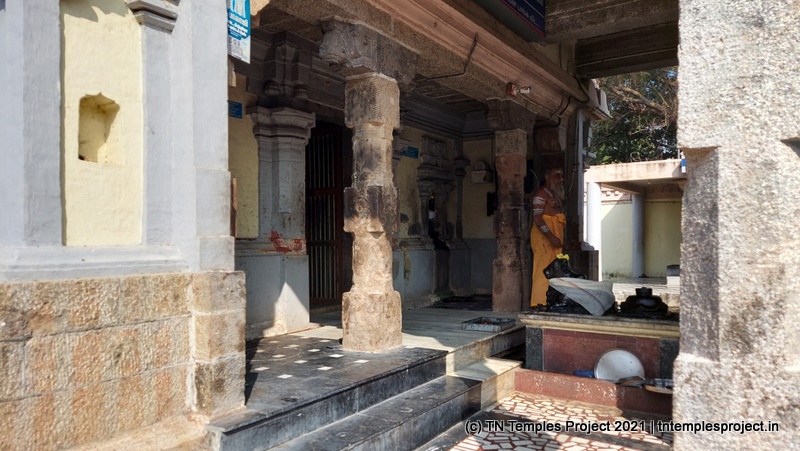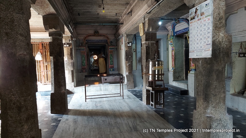 While the core temple and the garbhagriham is from the Chola period, much of the rest of the temple is from the Nayak period in the 16th century. The unassuming entrance gives way to a fairly extensive and comprehensive temple inside, with shrines for all parivara deities, as well as Bhairavar and Anjaneyar.