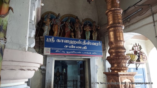 இந்த கோவிலில் உள்ள உற்சவ மூர்த்திகளில் சிவன் கல்யாண சுந்தரேஸ்வரராக ஒருவர், காசி யாத்திரைக்கு புறப்படத் தயாராகிறார். அவர் ஒரு வாக்கிங் ஸ்டிக்கைப் பிடித்துள்ளார், அதே சமயம் பார்வதி அந்த குச்சியின் மறுமுனையில் அவரை விட்டு வெளியேறாமல் இருக்கப் பிடித்திருப்பதைக் காணலாம்! காளஹஸ்தீஸ்வரர் மற்றும் காத்யாயனி அம்மன் திருக்கல்யாணம் ஆண்டுதோறும் மகர சங்கராந்தி தினத்தில் கொண்டாடப்படுகிறது. அம்மனுக்கு தினமும் சிறப்பு ராகுகால பூஜை நடக்கிறது.