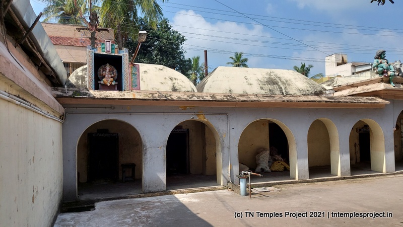 முதலில், சோழர் காலத்தில் கட்டப்பட்ட சிறிய கோயில். 17ஆம் நூற்றாண்டில் நாயக்கர் காலத்தில், முதலாம் செர்போஜியின் ஆட்சியின் கீழ் இக்கோயில் குறிப்பிடத்தக்க அளவில் விரிவுபடுத்தப்பட்டு புதுப்பிக்கப்பட்டது. காஞ்சி மடத்தின் அப்போதைய பீடாதிபதியின் வசதிக்காக இந்தக் கோயில் கட்டப்பட்டதாக கல்வெட்டுகளில் பதிவு செய்யப்பட்டுள்ளது. கும்பகோணத்தில் அதன் தலைமையகம்.