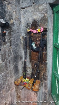 அழகர் மலையில் உள்ள கள்ளழகர் சுந்தரராஜப் பெருமாள் கோயிலைப் போலவே, கோயிலின் காவலராக கருப்பர் இருக்கிறார், அவருக்கு அழகர் கோயிலில் உள்ளது போல இங்கு தனி சன்னதி இல்லை. மாறாக, கருப்பர் ஆண்டாள் சன்னதியின் கிழக்குப் பக்கச் சுவரில் மேற்கு நோக்கி இருக்கிறார். அவர் இங்கு மிருக பலி கொடுப்பதில்லை, அதற்கு பதிலாக மற்ற எல்லா தெய்வங்களுக்கும் செய்யப்படும் நெய்வேத்தியம் கருப்பருக்கும் செய்யப்படுகிறது.