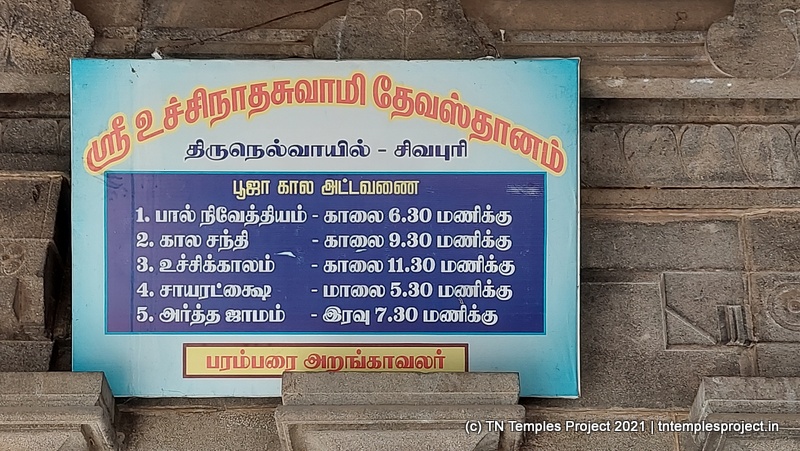 நெல் (தமிழ் – நெல்) வயல்கள் நிறைந்த பகுதியாக இருந்ததால், இந்த இடத்தின் பழங்காலப் பெயர் திருநெல்வாயில். இக்கோயிலில் சம்பந்தர் தனது பதிகத்தில் திரு உச்சி என்று குறிப்பிடுகிறார். சம்பந்தருடன் தொடர்புடைய கோயில் என்பதால், இது 7ஆம் நூற்றாண்டில் இருந்திருக்க வேண்டும் எனவே முதலில் பல்லவர் கோயிலாக இருந்திருக்க வேண்டும். இன்று கட்டமைக்கப்பட்ட கோயில் சோழர் காலத்தில் இருந்து 1000 ஆண்டுகளுக்கு மேல் பழமையானது. கோவில் குளம் பிரதான கோபுரத்திற்கு கிழக்கே அமைந்துள்ளது.