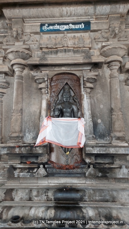 கோஷ்டத்தில் நர்த்தன விநாயகர், தட்சிணாமூர்த்தி (அழகான சிற்பம்), அண்ணாமலையார், பிரம்மா மற்றும் துர்க்கை உள்ளனர். பிரகாரத்தில் விநாயகர், சுப்பிரமணியர், சண்டிகேஸ்வரர் மற்றும் தனி நவக்கிரகம் சன்னதி உள்ளது. கிழக்கு பிராகாரத்தில் ஐந்து லிங்கங்கள் (பஞ்ச பூத ஸ்தல லிங்கங்களைக் குறிக்கும்), சனி, சூரியன் மற்றும் சந்திரன். கர்ப்பகிரஹத்தின் மேல் உள்ள விமானம் ஒரு நிலை (ஏக-தல) வேசர விமானம்.