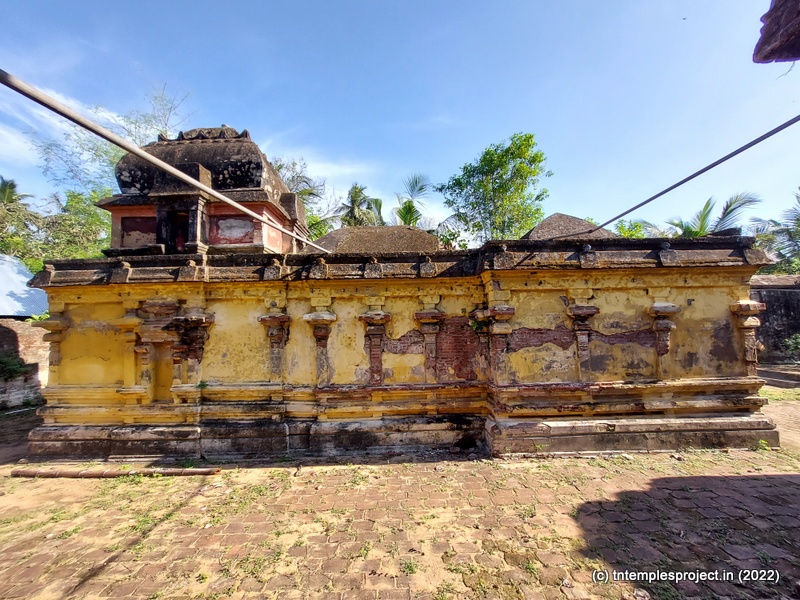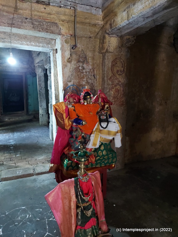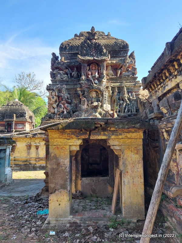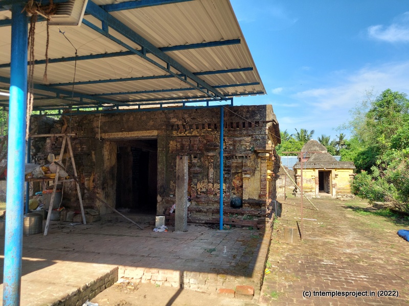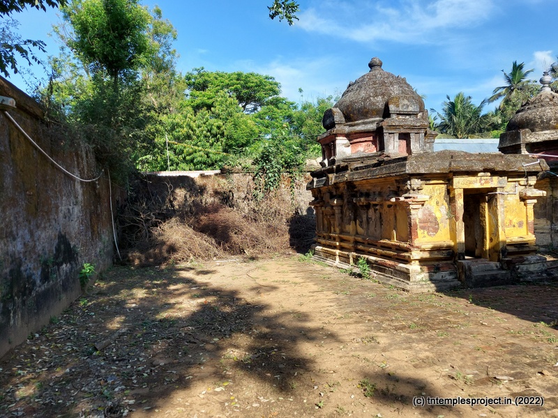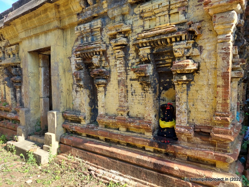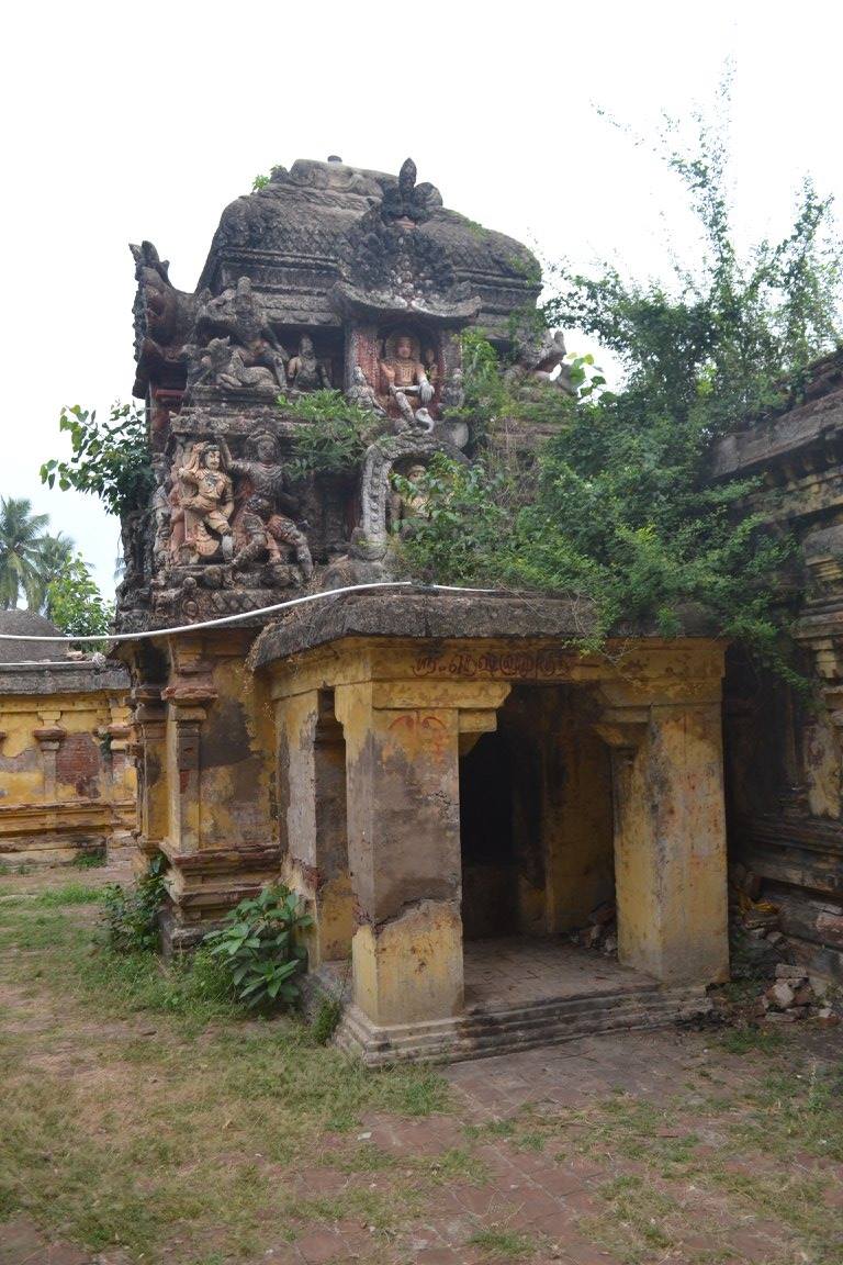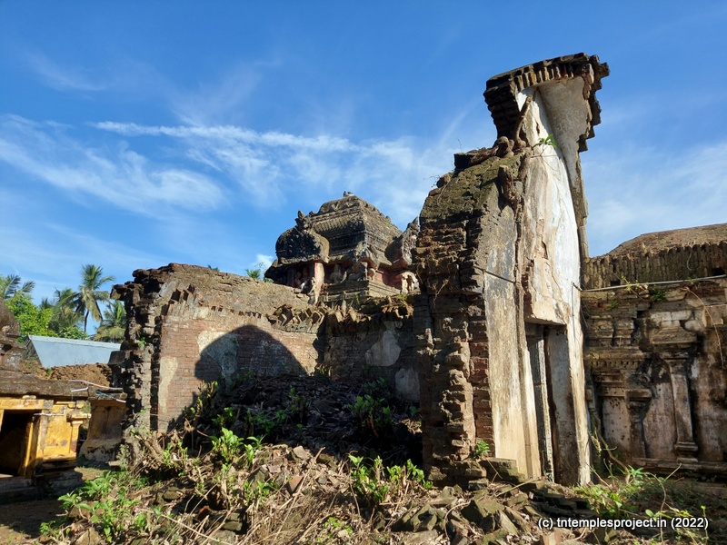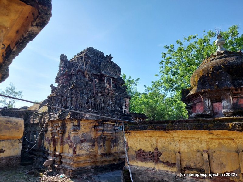 Below are a few pictures from c.2016, taken by our friend and associate Kadambur Vijay. These are from a time when at least some parts of the temple premises were maintained a little better, allowing a freer walk-around. Many of the vigrahams are also seen in their original places inside the temple (and not in the tin-shed they are housed in, during my later visit in April 2022).
