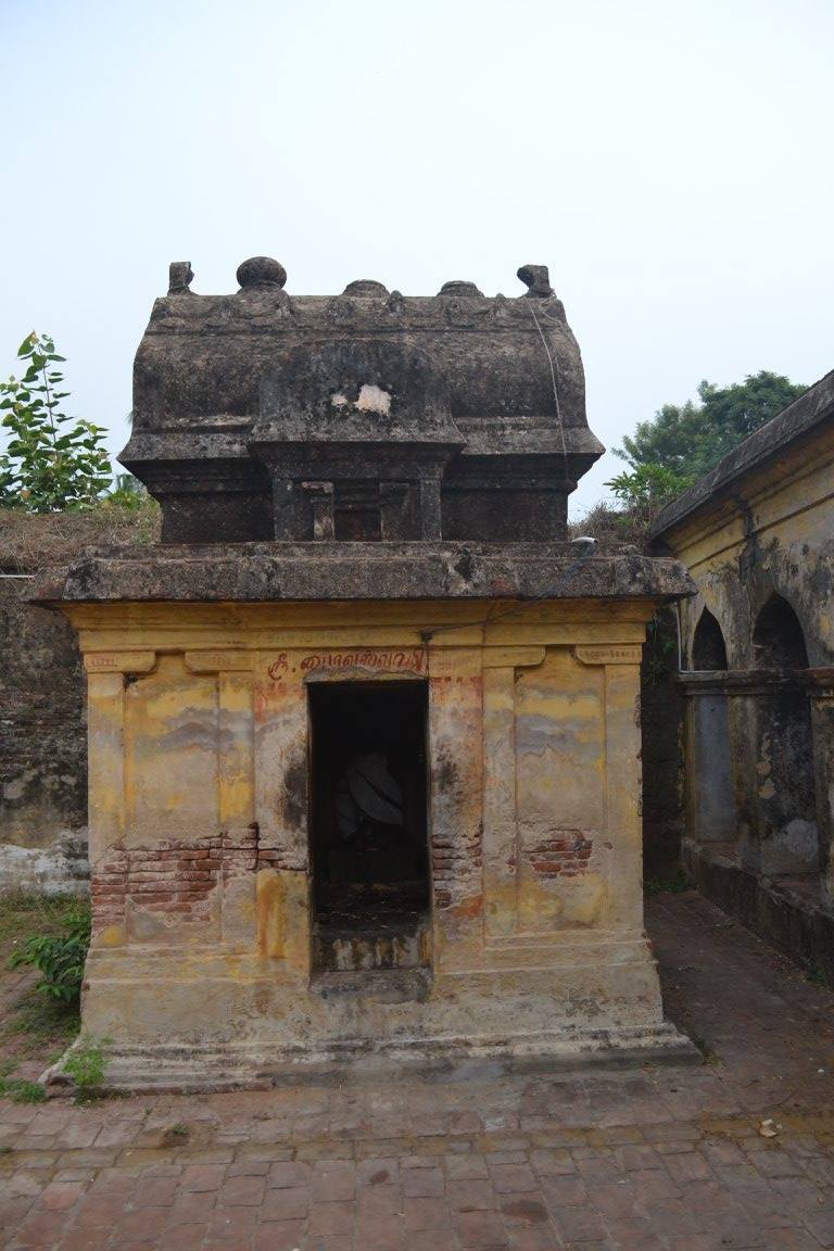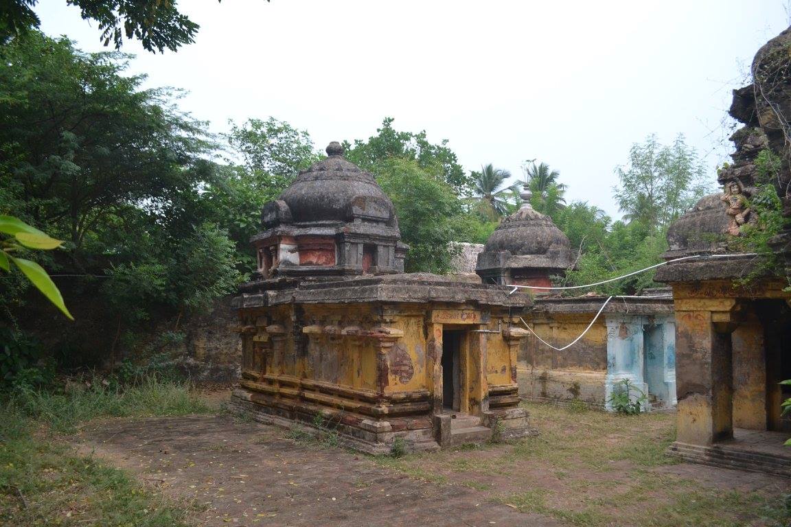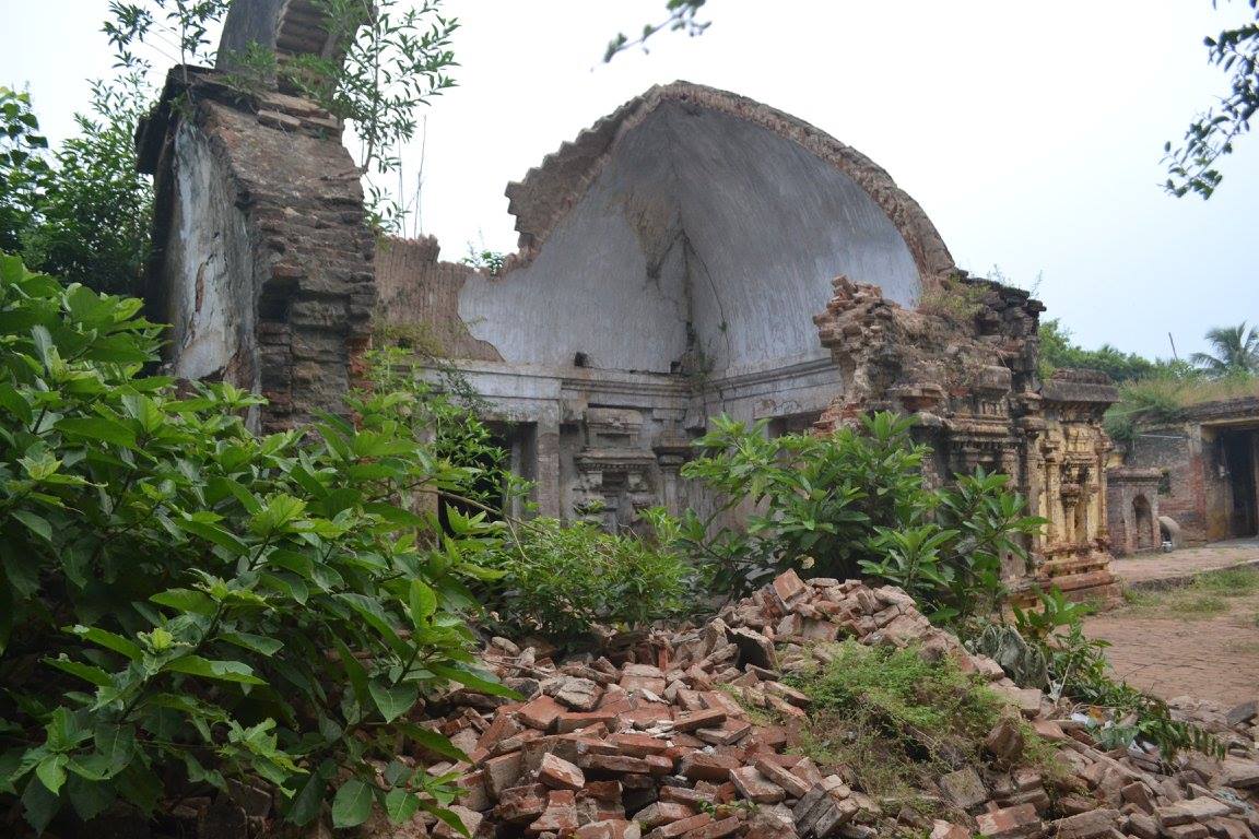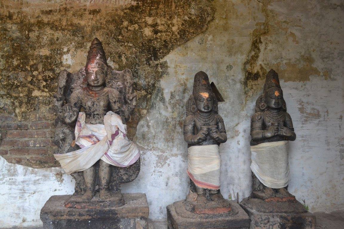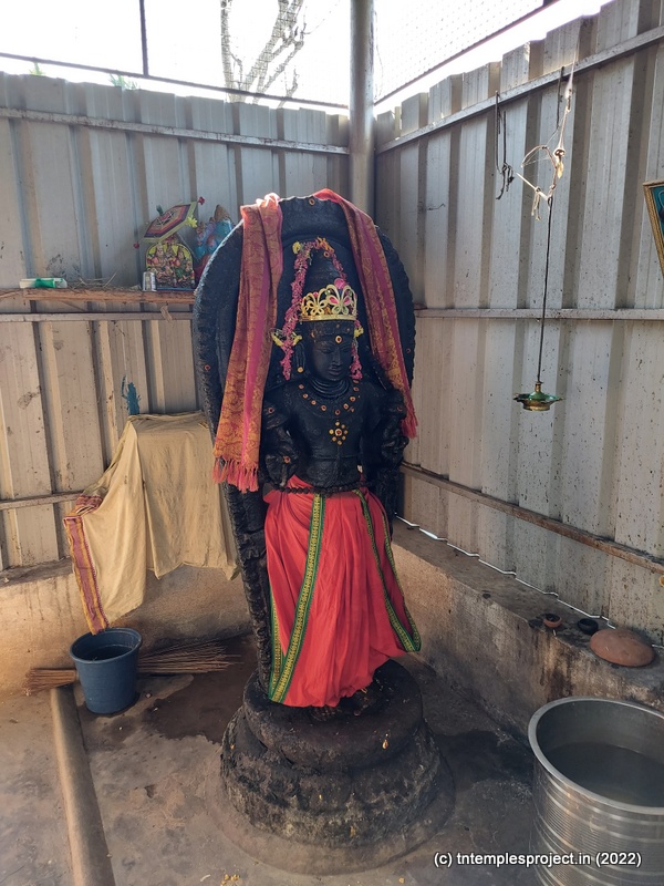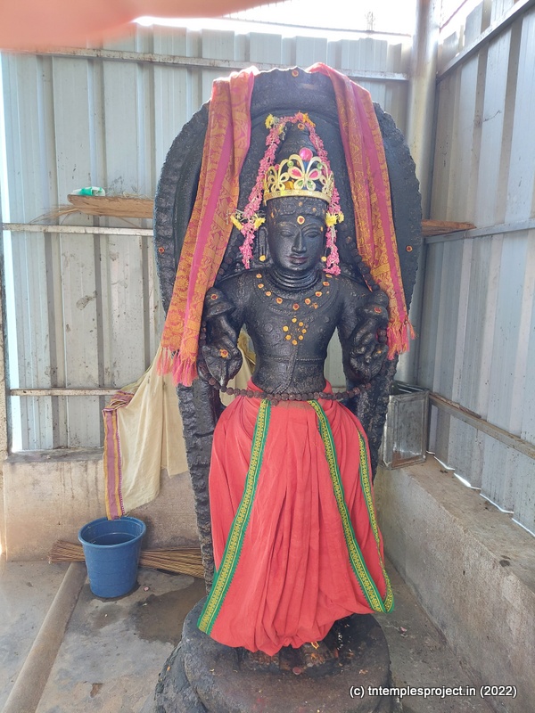 Below are a few pictures from c.2016, taken by our friend and associate Kadambur Vijay. These are from a time when at least some parts of the temple premises were maintained a little better, allowing a freer walk-around. Many of the vigrahams are also seen in their original places inside the temple (and not in the tin-shed they are housed in, during my later visit in April 2022).