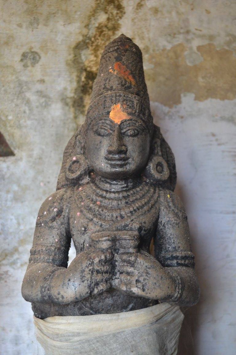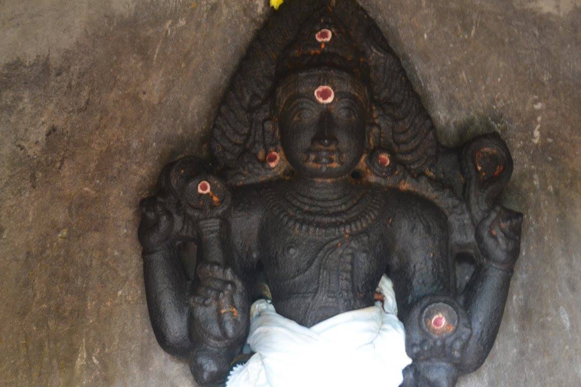 In Tamil retellings of the Mahabharatam, there is a story of Purushamrigam – a half-human, half-animal creature. The creature was created by Vishnu to protect the Pandavas at the time of the Rajasuya Yagna, and it is said that Tiruvathavur (near Madurai) is where the Pusushamrigam was created. Purushamrigam is believed to have worshipped at this temple here in Sholampettai.