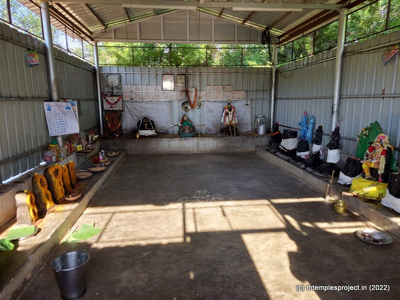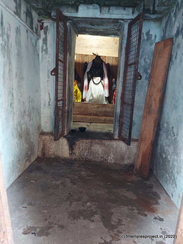 Because of the poor condition of the temple, the tin shed outside houses all the other vigrahams that were previously inside the temple. Daily puja is carried out to these deities, here.