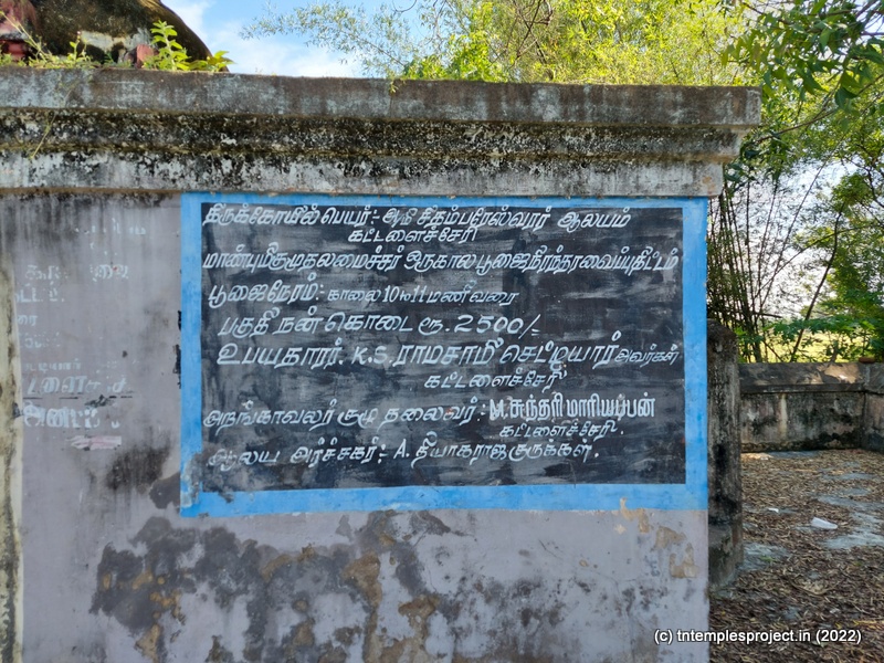 கட்டளைச்சேரி கிராமத்தில் உள்ள இந்த சிறிய கோவிலுக்கு சொந்தமாக ஸ்தல புராணம் இல்லை, ஆனால் இப்பகுதியில் உள்ள பழமையான கோவில்களில் ஒன்றாக கருதப்படுகிறது. பல தசாப்தங்களுக்கு முன்னர் கோயில் மிகப் பெரியதாக இருந்ததாகக் கதைகளை கேட்டிருப்பதாக உள்ளூர்வாசிகள் கூறுகிறார்கள், ஆனால் இது துல்லியமாக இருக்காது. பிரதான தெய்வத்தின் பெயரின் அடிப்படையில், இந்த கோயில் சிதம்பரம் நடராஜர் கோயிலுடன் இணைக்கப்பட்டிருக்கலாம் அல்லது அந்த கோயிலின் இணைப்பாக இருக்கலாம்.