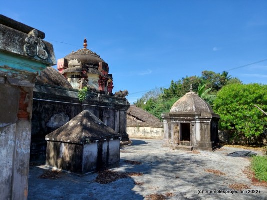 கோஷ்ட தெய்வங்கள் இல்லை – தட்சிணாமூர்த்தி கூட இல்லை (மற்றபடி வேறு எந்த கோஷ்ட தெய்வங்களும் இல்லையென்றாலும், பல கோவில்களில் தட்சிணாமூர்த்தி நிலையான ஸ்தலமாக இருக்கிறார்). கோயில் வளாகத்தின் வடகிழக்குப் பகுதியில் நவகிரகம் சன்னதி இல்லை.. வளாகத்தில் ஒரு கிணறு உள்ளது, அதில் இருந்து அபிஷேகம் செய்ய பயன்படுத்தப்படுகிறது.