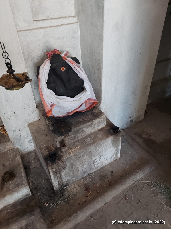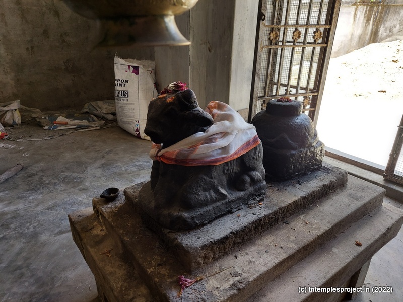 The temple’s layout is rather simple, with the gates leading to a maha mandapam in which is a bpm and Nandi. There is no dhwajasthambam here. As it is a west-facing temple, Murugan and Vinayakar, on the left and right, respectively, guard the entrance to the ardha mandapam and garbhagriham.