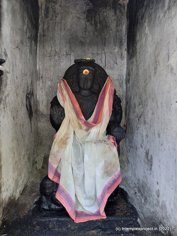 Other than Dakshinamurti, there are no koshtam deities. In the prakaram are Vinayakar, Murugan with his consorts Valli and Deivanai and Chandikeswarar.