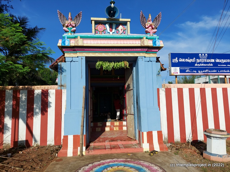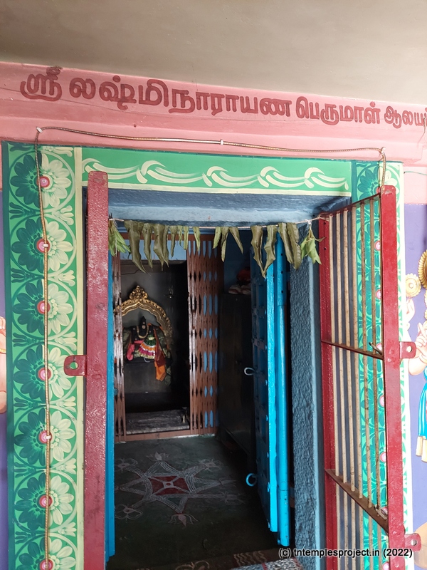 நுழைவாயில் வளைவு ஒரு குறுகிய பிரகாரம் வரை திறக்கிறது, அதைத் தொடர்ந்து ஒரு சிறிய மண்டபத்தில் பலி பீடம் மற்றும் நடுவில் கருடாழ்வார், இடதுபுறத்தில் பால விநாயகர் (கர்ப்பகிரஹத்தின்), மற்றும் பால ஆஞ்சநேயர் (வலதுபுறம்) ஒரு தனி துணையில் உள்ளனர். மண்டபம். மூலவர் லக்ஷ்மி நாராயணப் பெருமாளுடன் கர்ப்பக்கிரகம் உள்ளது, அவரது துணைவிகளான ஸ்ரீதேவி மற்றும் நீலாதேவி ஆகியோர் உள்ளனர்.