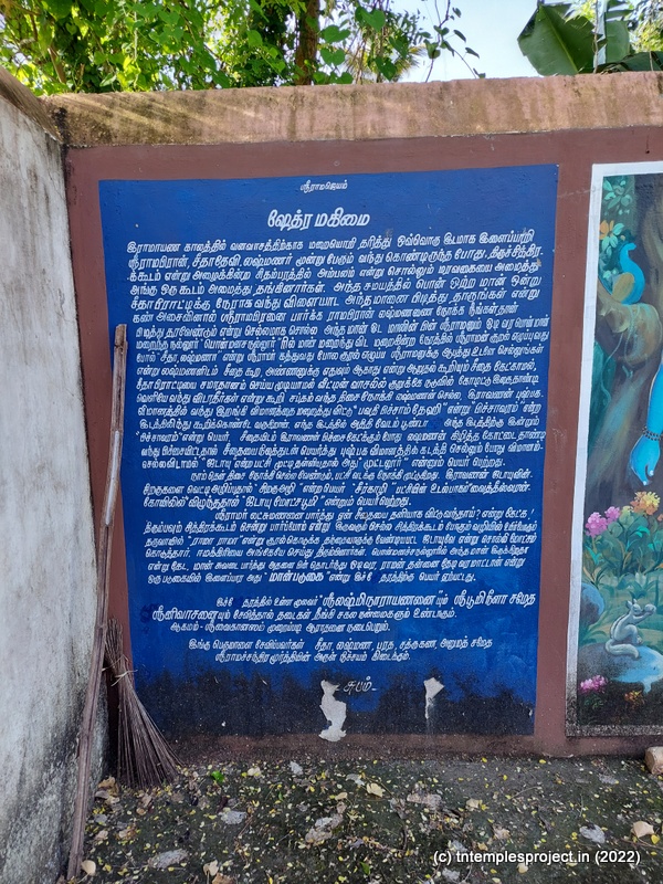 ராவணனால் சீதையைக் கடத்திய சுவாரசியமான ராமாயணக் கதை – அதன் ஒரு பகுதி முன்பு விவரிக்கப்பட்டபடி மாப்படுகை என்ற பெயரையும் வழங்குகிறது – சுவர்களில் ஓவியம் வரையப்பட்டுள்ளது, இது இடத்தின் வரலாற்றைக் குறிக்கிறது.