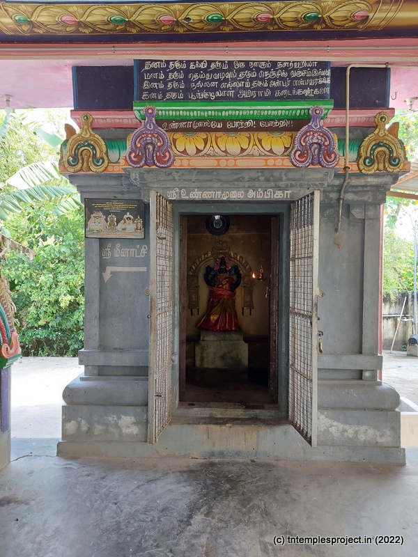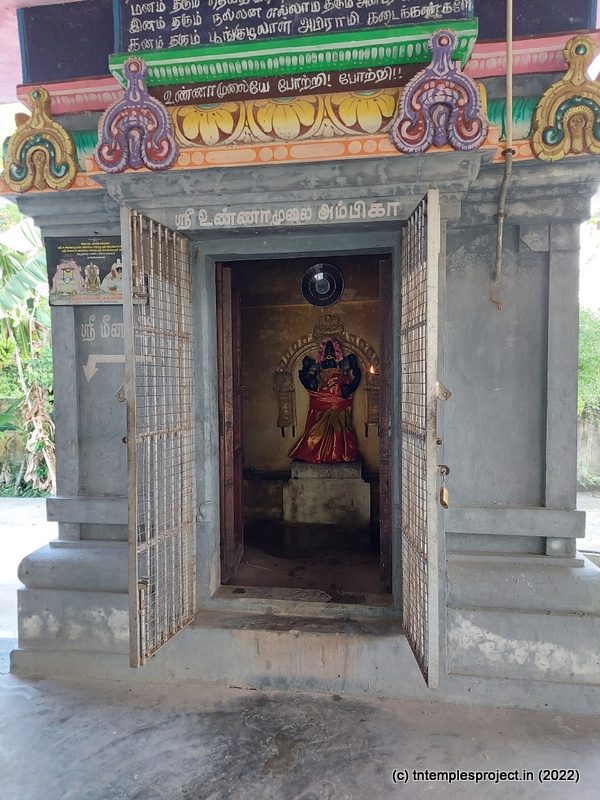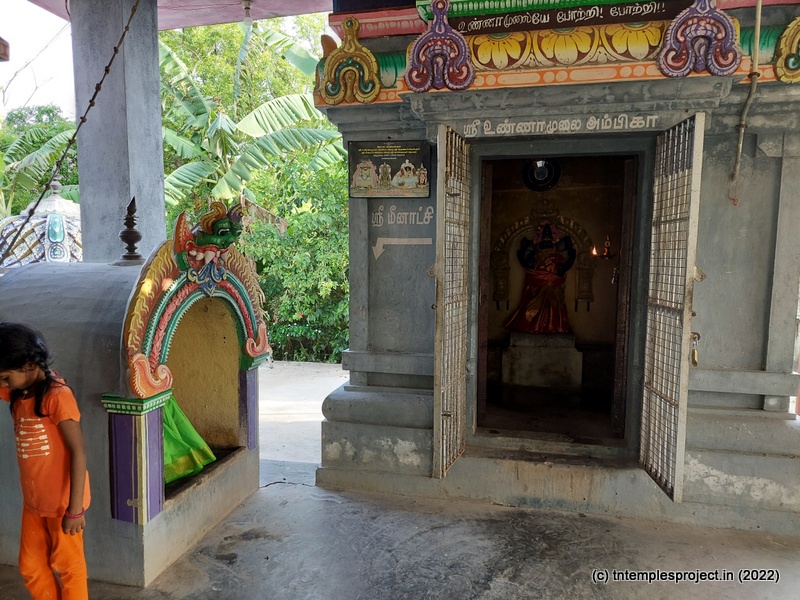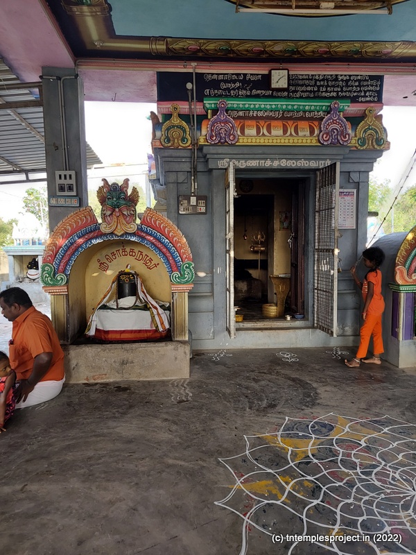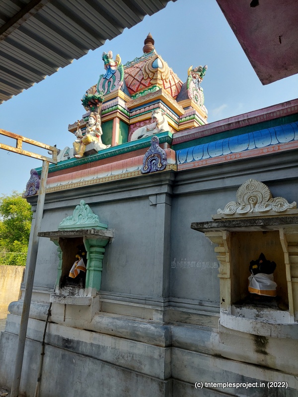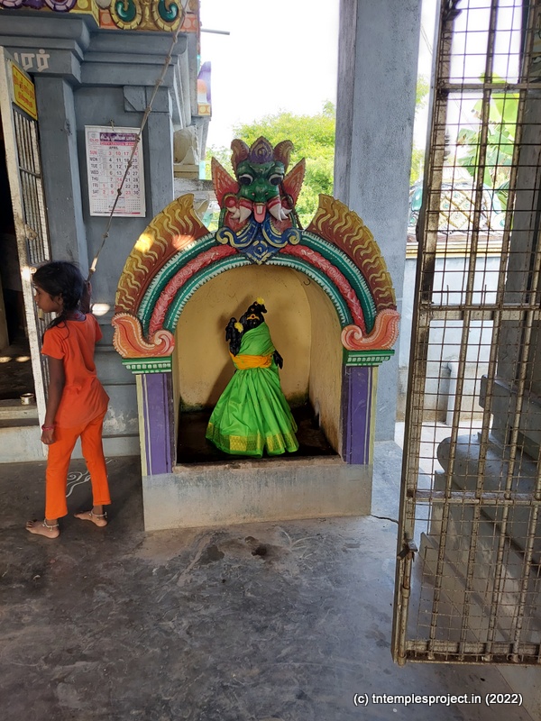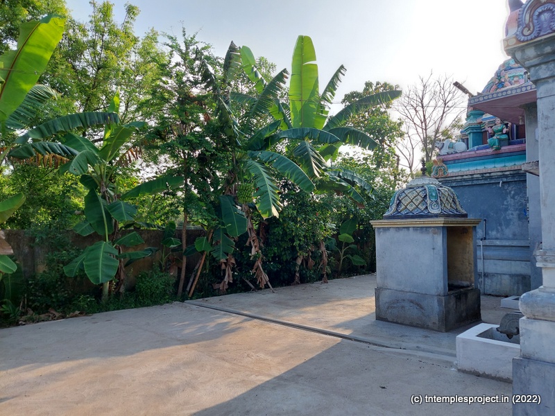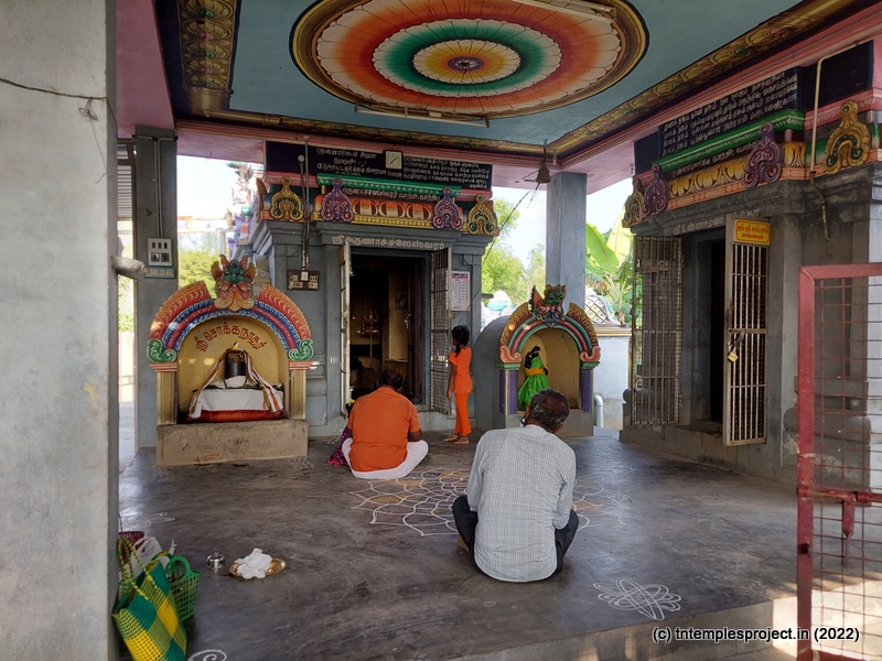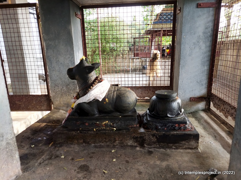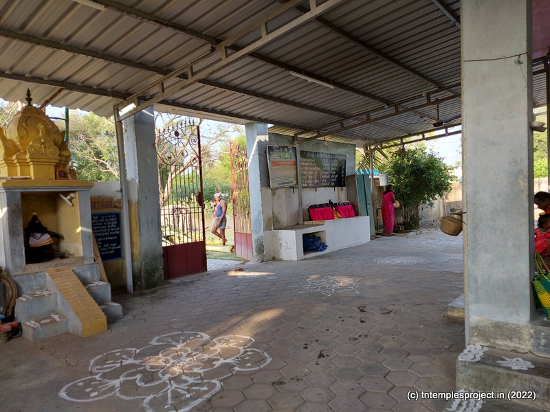கோவிலின் கிழக்கு நுழைவாயில் மூடப்பட்டு, தெற்குப் பக்கத்தில் உள்ள ஒரு முறையான வாயில் வழியாக நுழைவாயில் உள்ளது. நேராக முன் மண்டபம் கர்ப்பக்கிரகம் மற்றும் அம்மன் சன்னதிகள் உள்ளன. வலதுபுறம் பலி பீடம் மற்றும் நந்தி மண்டபம் உள்ளன.