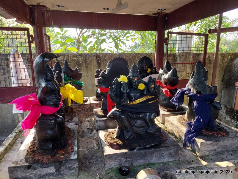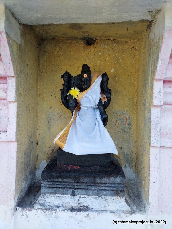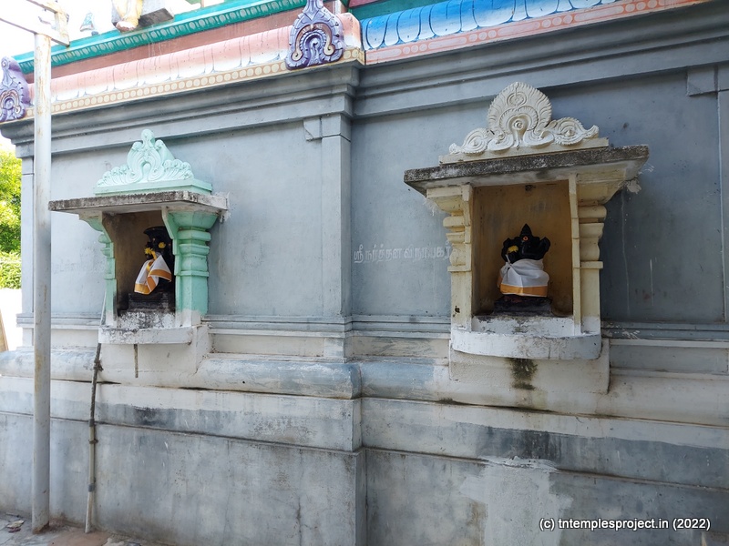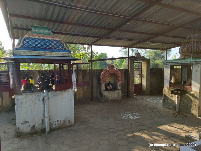 கோஷ்டத்தில் நர்த்தன விநாயகர், தட்சிணாமூர்த்தி, விஷ்ணு (இது மிகப் பழமையான கோயிலாக இருக்கலாம்) பிரம்மா மற்றும் துர்க்கை ஆகியோர் உள்ளனர். பிரகாரத்தில் இடப்புறம் சப்த மாதா, விநாயகர், முருகன் சந்நிதிகள் வள்ளி, தெய்வானை, சண்டிகேஸ்வரர், சூரியன், சந்திரன் ஆகியோரின் சன்னதியும், தெற்குச் சுவரில் ஐயப்பனுக்கு சிறிய சன்னதியும் உள்ளது. கோயிலின் வடகிழக்கு மூலையில் தனி நவக்கிரகம் சன்னதியும் உள்ளது.