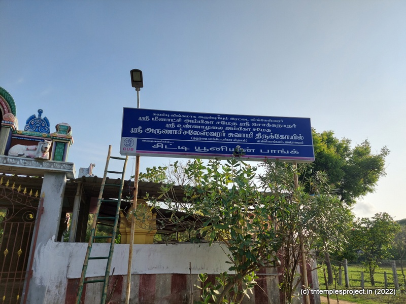 இங்கு பிரதான தெய்வம் / மூலவர் அண்ணாமலையார், அவரது துணைவியார் உண்ணாமுலை அம்மன், இருவரும் தனித்தனி சன்னதிகளுடன் முறையே கிழக்கு மற்றும் தெற்கு நோக்கி உள்ளனர். கர்ப்பகிரஹத்தின் நுழைவாயிலின் ஓரத்தில் சொக்கநாதர் மற்றும் மீனாட்சி அம்மன் ஆகியோருக்கு சிறிய சன்னதிகள் உள்ளன.