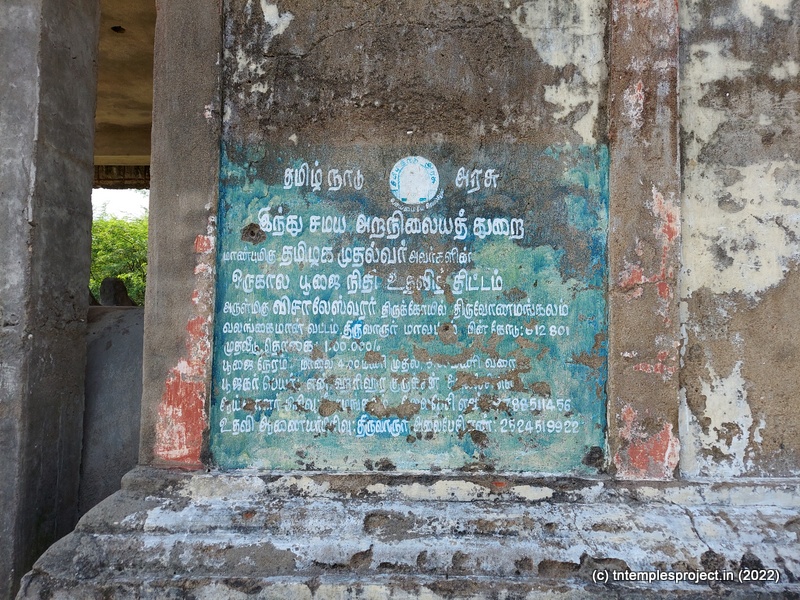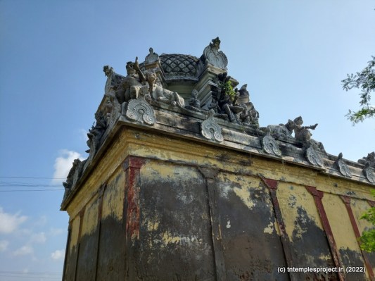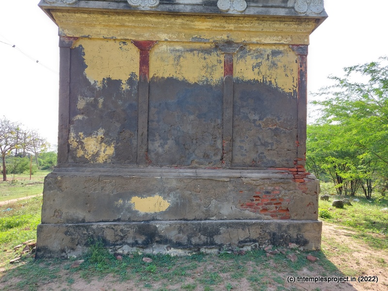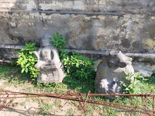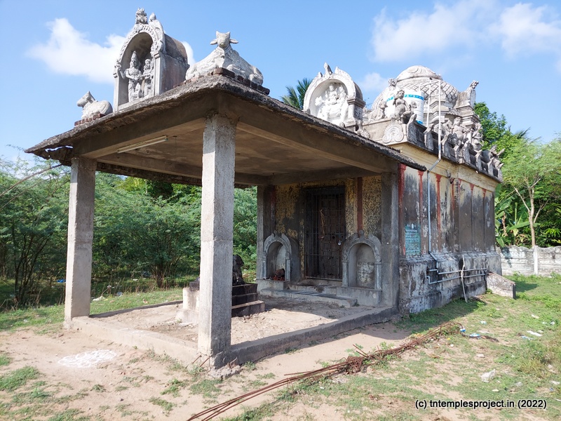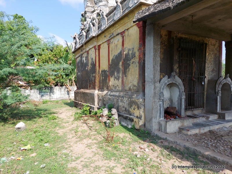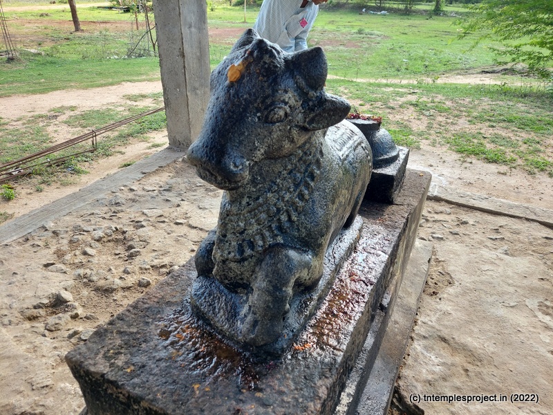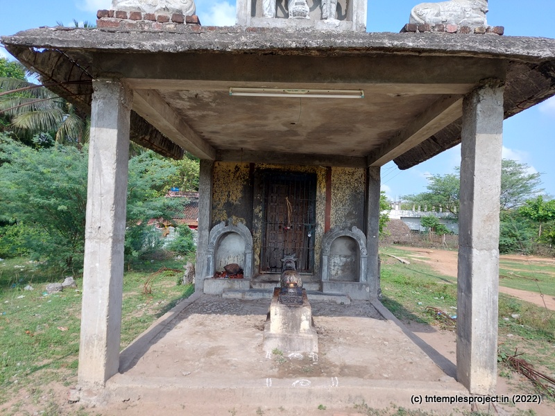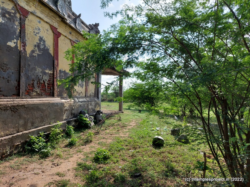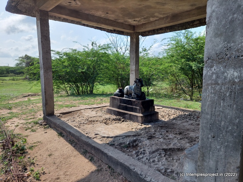 The temple lies in shambles today, with the entire temple constituted by a single shrine – the garbhagriham – with a Nandi outside. Beside the outer walls of the shrine one can see old murtis that have been discarded. The original temple here is likely to have been quite large, going by the size of the temple tank located to the immediate south of the temple / shrine.