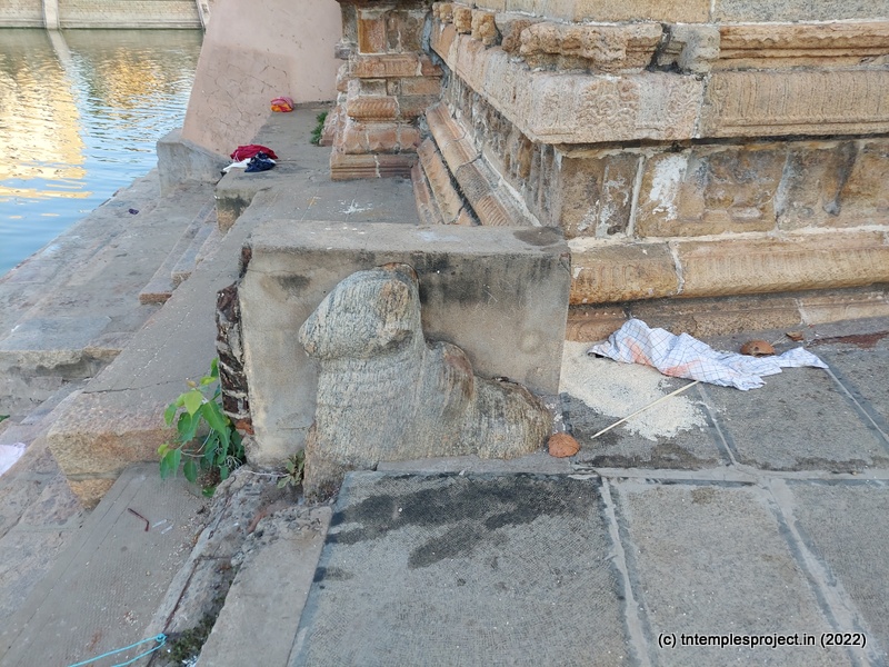 Interestingly, none of the shrines have a Nandi facing the Siva Lingam. Instead, on the western banks, there are two Nandis facing east. The interpretation here is that the entire Mahamaham tank itself is regarded as a manifestation of Lord Siva.