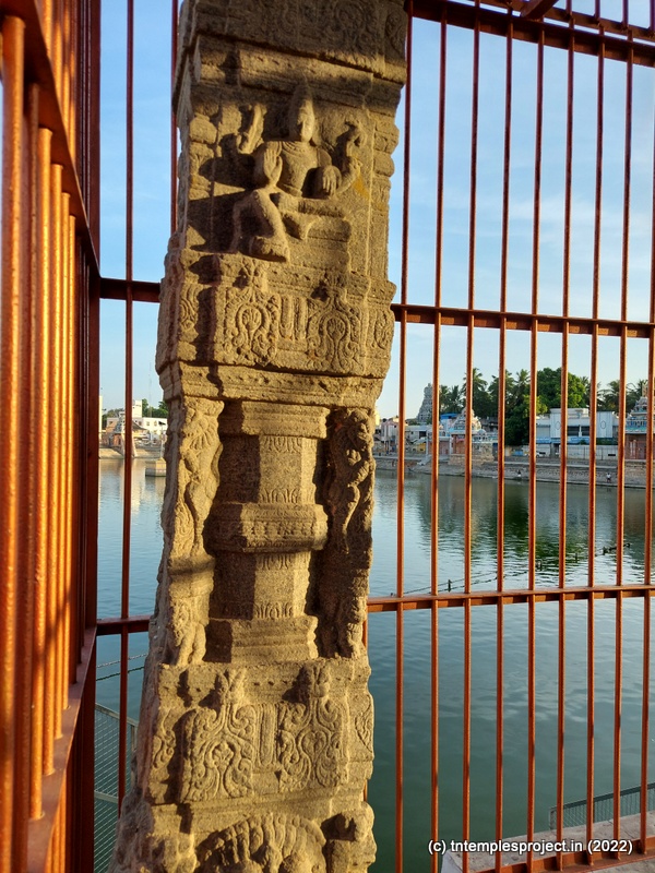 The largest of the 16 – the Brahma Teertheswarar (located on the north-western corner) – has more architecture and sculptures, including one depicting the king Raghunatha Nayak offering gold for the construction of the 16 shrines. The other shrines also have sculptures or inscriptions about various grants given by the king.