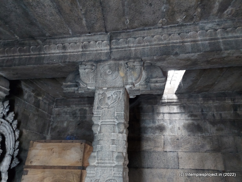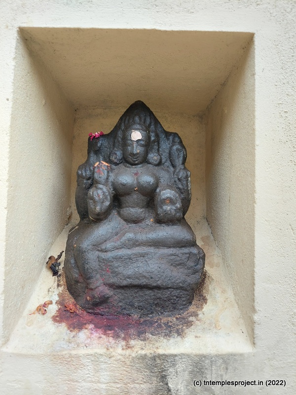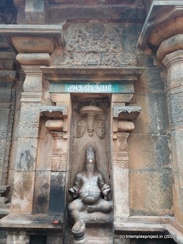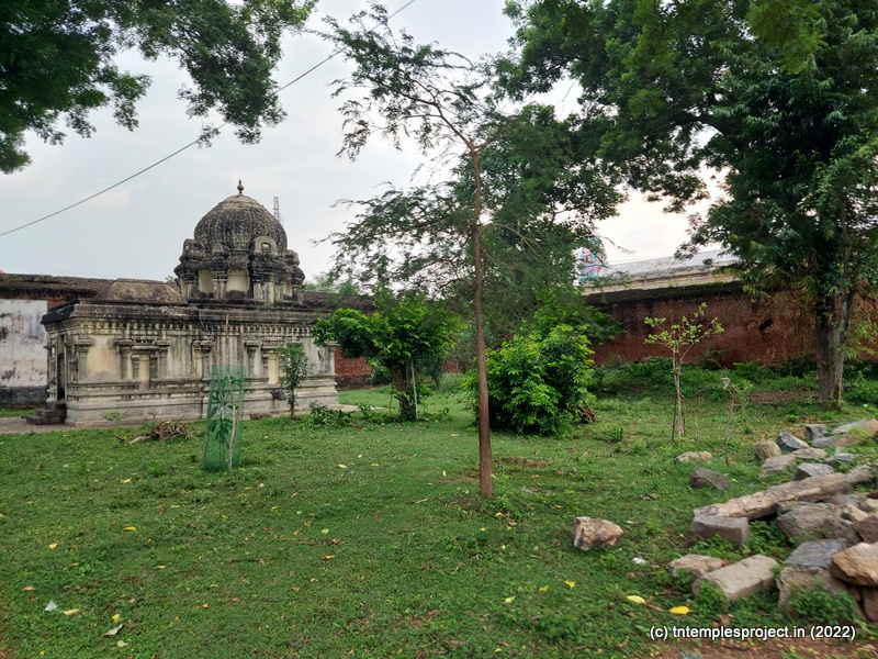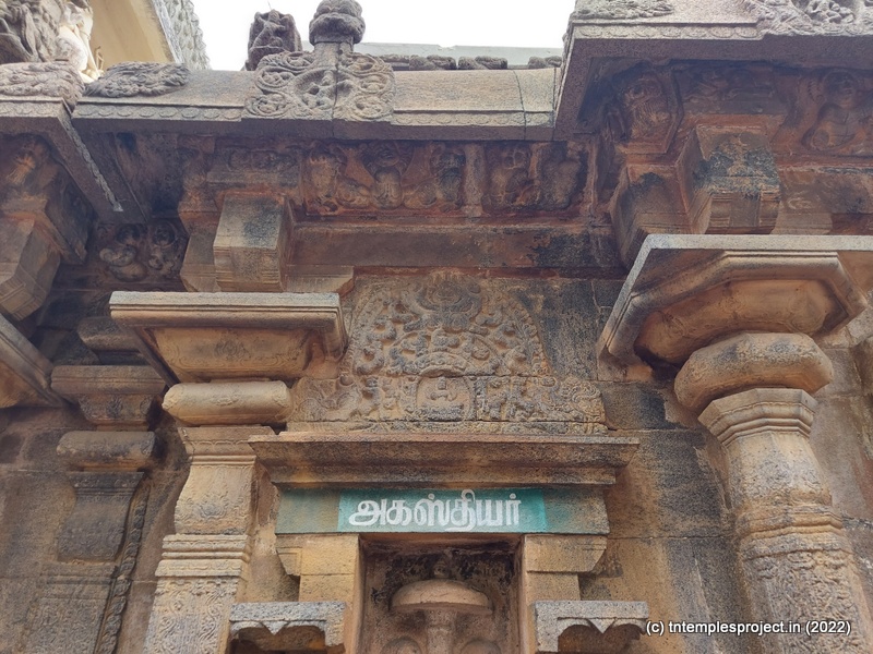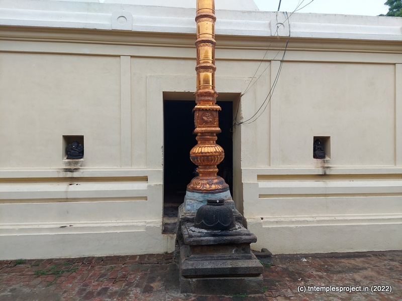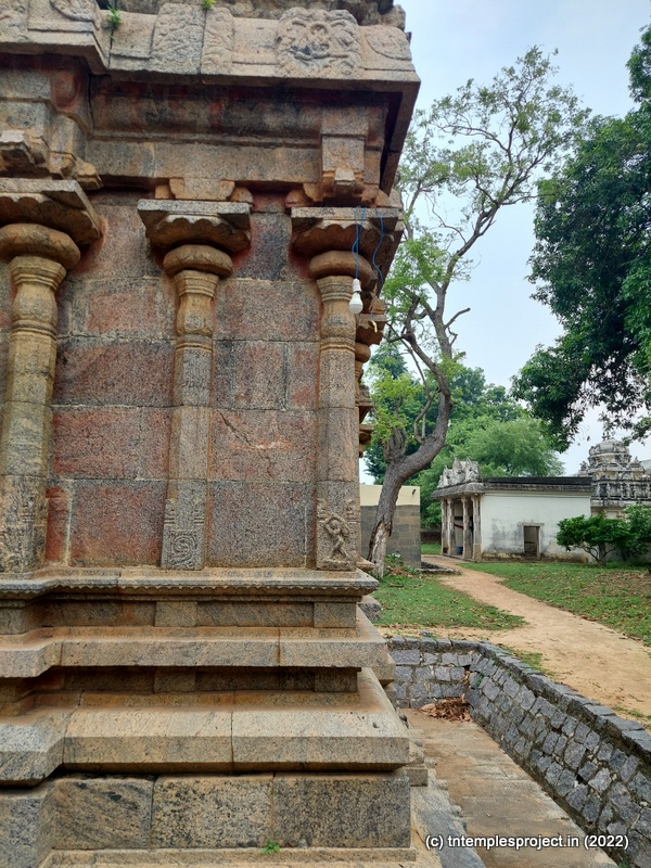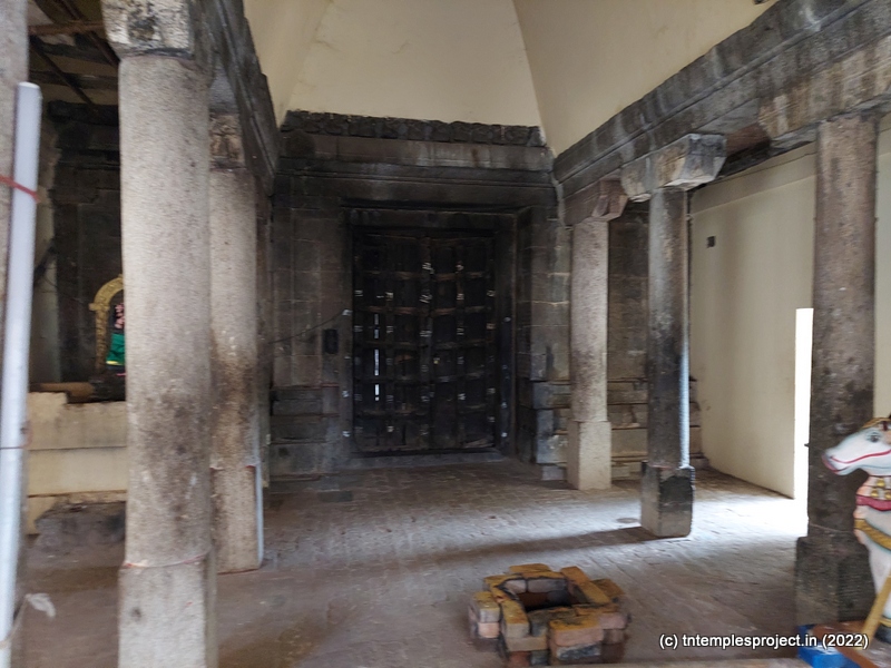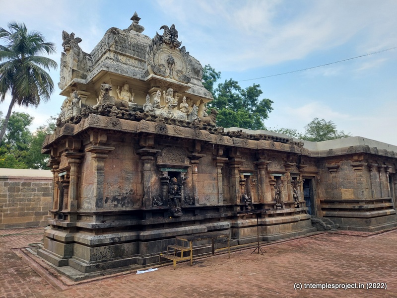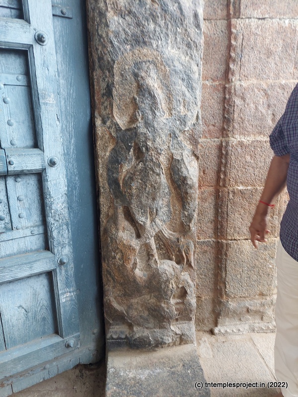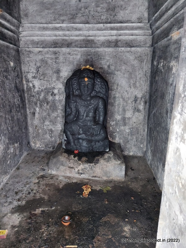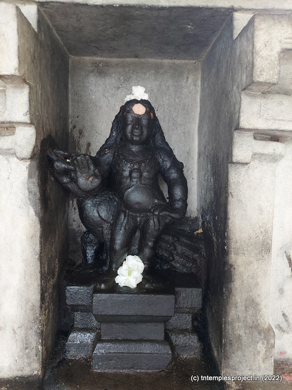 Nine vigrahams adorn the koshtams around the sanctum – Vinayakar, Uma Maheswarar, Agastyar, Dakshinamurti, Lingodhbhavar, Brahma, Ardhanareeswarar, and Ashta Bhuja Durgai are beautifully sculpted, while the ninth is an unidentifiable mass of stone. There are also several inscriptions on the outer walls of the garbhagriham.
