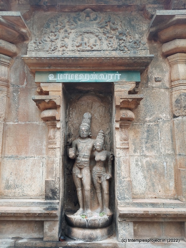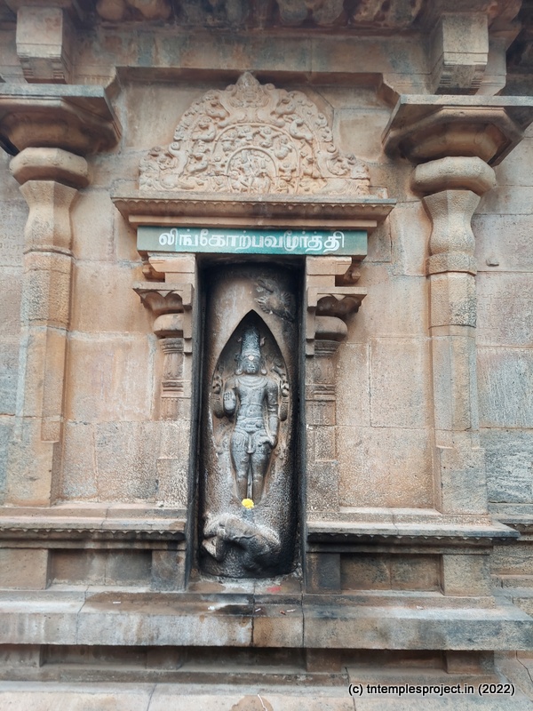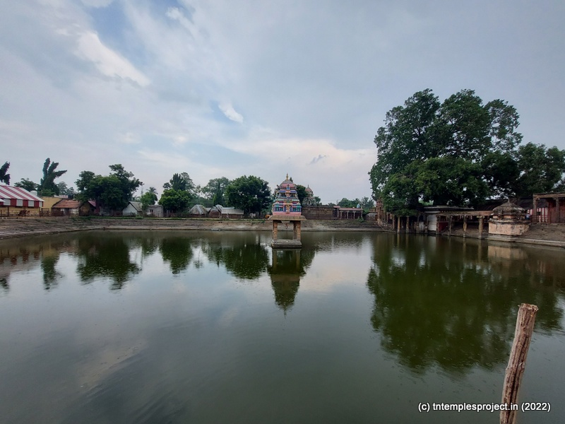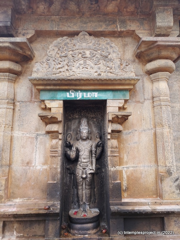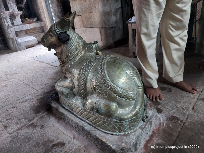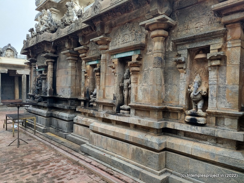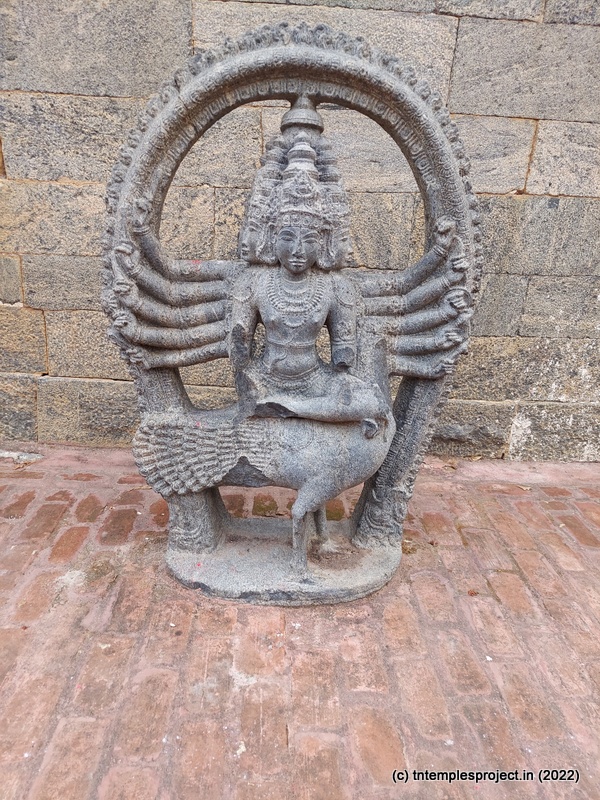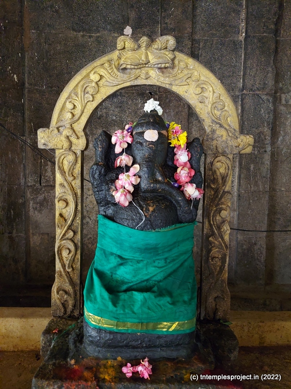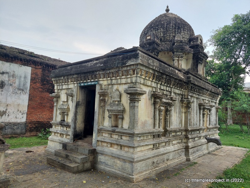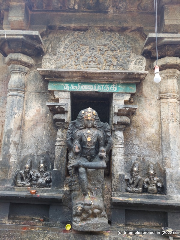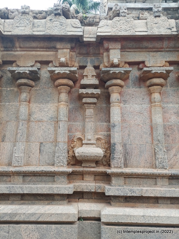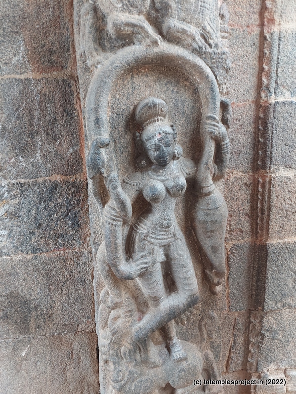 Nine vigrahams adorn the koshtams around the sanctum – Vinayakar, Uma Maheswarar, Agastyar, Dakshinamurti, Lingodhbhavar, Brahma, Ardhanareeswarar, and Ashta Bhuja Durgai are beautifully sculpted, while the ninth is an unidentifiable mass of stone. There are also several inscriptions on the outer walls of the garbhagriham.