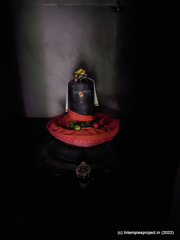 The main shrine is rather simple from the entrance to the garbhagriham, passing through a maha mandapam and an ardha mandapam. Two very differently designed dwarapalakas adorn the sides of the entrance to the garbhagriham, while a row of ganas is on top. In the mandapam are vigrahams of the Tevaram moovar as well as other deities such as Suryan, Chandran and Bhairavar.
