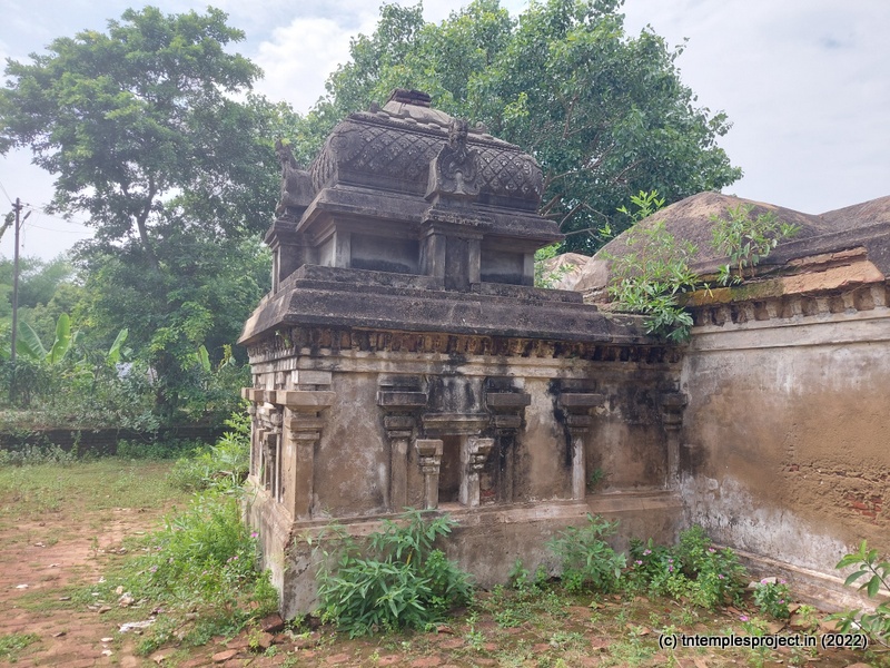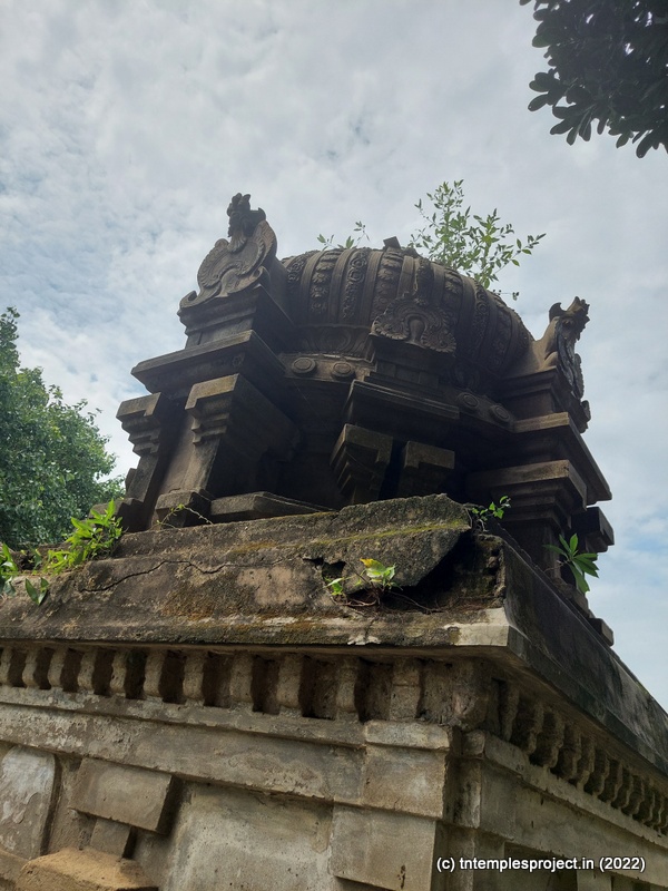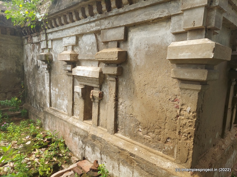 Arches on both sides of the passage lead to the prakaram, from where the neglected status of the temple is even more clearly visible. There are no shrines for parivara deities in the prakaram, as are all the koshtams (including the Dakshinamurti shrine, which is more often than not, untouched). The outer walls of the garbhagriham and Amman shrine also show signs of reword in the late 20th century.