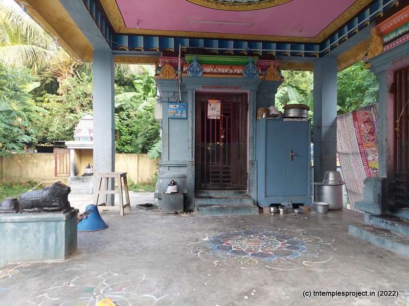 தெற்குப் பக்கத்திலிருந்து ஒரு வாயில் வழியாக பிரதான நுழைவாயில் இருந்தாலும், கோயில் கிழக்கு நோக்கி உள்ளது. நமக்கு நேராக சிவபெருமானை நோக்கிய நந்தி உள்ளது. எளிமையான மண்டபம் சிவன் மற்றும் அம்மன் சன்னதிகளை உள்ளடக்கியது. கர்ப்பக்கிரகம் விநாயகர் விக்ரஹத்தால் பாதுகாக்கப்படுகிறது. இங்குள்ள மூலவர் லிங்கம் மிதமான அளவில் உள்ளது – பெரிதாகவோ சிறியதாகவோ இல்லை.