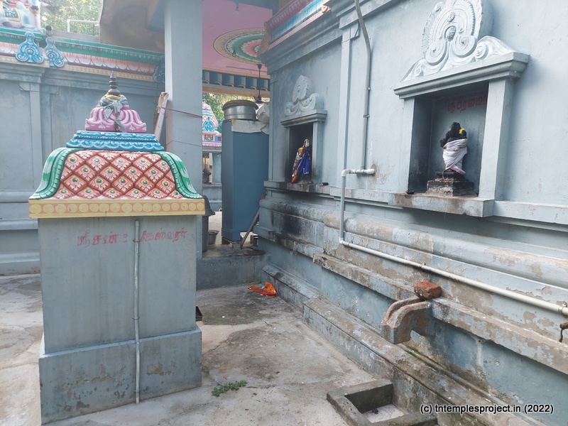 கர்ப்பகிரஹம் கோஷ்டத்தில் நர்த்தன விநாயகர், தட்சிணாமூர்த்தி, லிங்கோத்பவர், பிரம்மா மற்றும் துர்க்கை உள்ளனர். பிரகாரத்தில் விநாயகர், முருகன், வள்ளி, தெய்வானை, மகாலட்சுமி, சண்டிகேஸ்வரர் ஆகியோர் உள்ளனர். வடகிழக்கில் நவக்கிரகம் சன்னதியும், மேற்கு நோக்கிய கிழக்குச் சுவரில் பைரவர், சூரியன், சந்திரன் ஆகியோருக்கான சிறிய சன்னதிகளும் உள்ளன. கோவில் வளாகத்தில் பழமையான மற்றும் சேதமடைந்த சில விக்ரஹங்களும் உள்ளன.