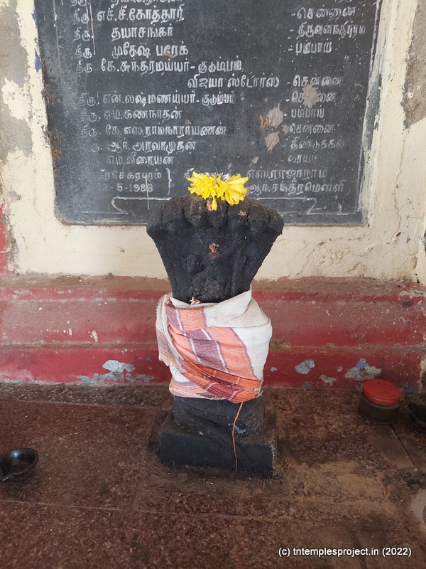 இங்குள்ள கட்டிடக்கலை இது சோழர் காலத்தை சேர்ந்ததாக இருக்கலாம் என்று கூறுகிறது. நுழைவாயிலுக்கு அப்பால் ஒரு நீண்ட, மூடப்பட்ட நடைபாதை உள்ளது, அது நேராக மகா மண்டபத்திற்கு செல்கிறது, நடுவில் ஒரு பலி பீடம் மட்டுமே உள்ளது. மகா மண்டப வாயிலின் இடப்புறம்