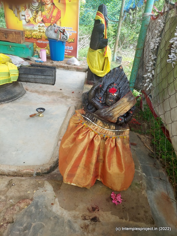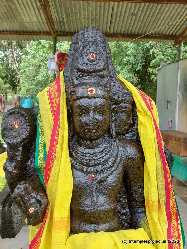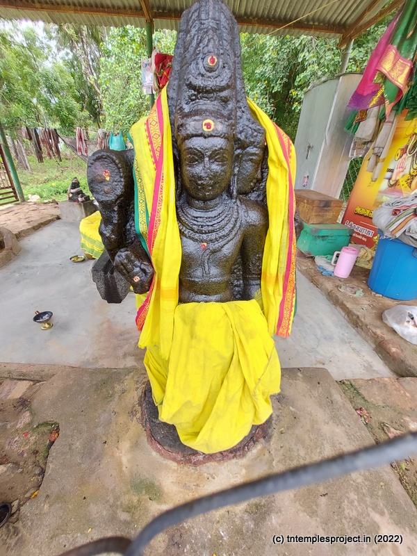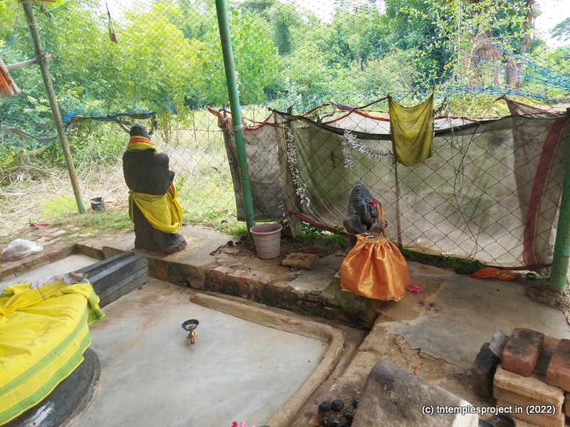 To call it a temple is itself quite generous, given that it is only a tin roof shed that exists today. However, given the nearby Perumal temple, and also going by the apparent age of some of the vigrahams here, as well as their workmanship and iconography, it seems to be that this would likely have been a large and prosperous temple and village, at one point in time. The original temple here may have been a Chola temple.