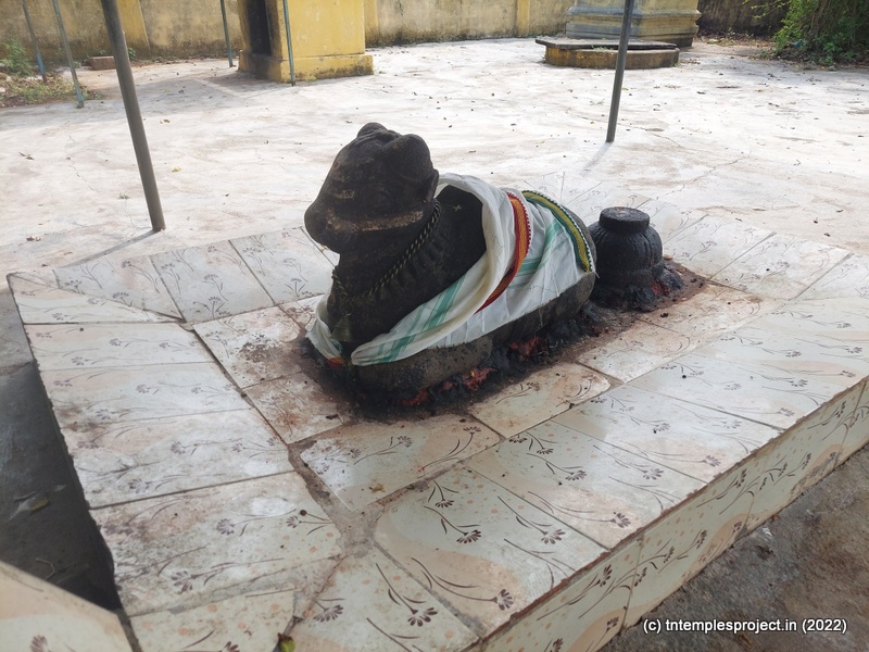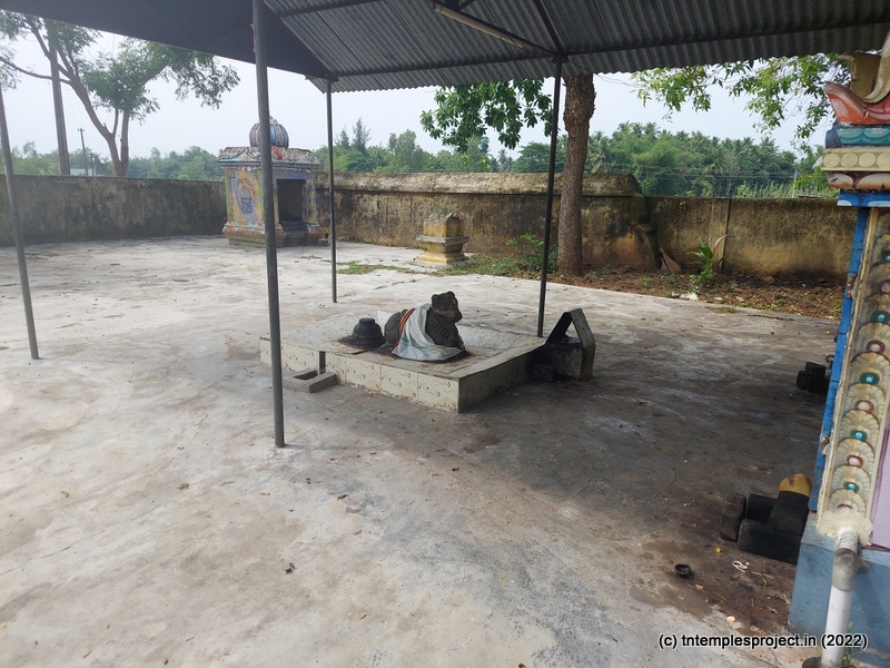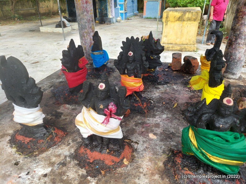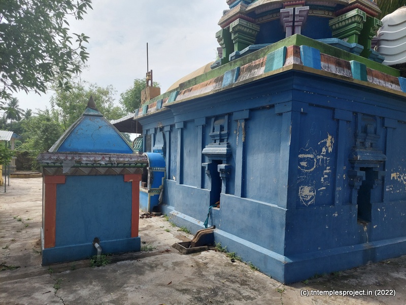 கோஷ்டங்களும் பாதி காலியாக உள்ளன, இதில் தட்சிணாமூர்த்தி மற்றும் துர்க்கை மட்டுமே உள்ளனர். பிரகாரத்தில் சண்டிகேஸ்வரரைத் தவிர பரிவார தெய்வங்களுக்கான சன்னதிகள் எதுவும் இல்லை. தனி நவக்கிரகம் சன்னதியும், சனிக்கு ஒன்றும் உள்ளது. கோவில் வளாகத்தின் தென்கிழக்கு பகுதியில் ஒரு சிறிய சன்னதி உள்ளது, அதில் விக்ரஹம் உள்ளது.
