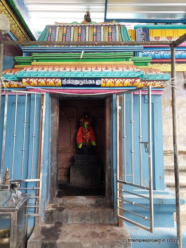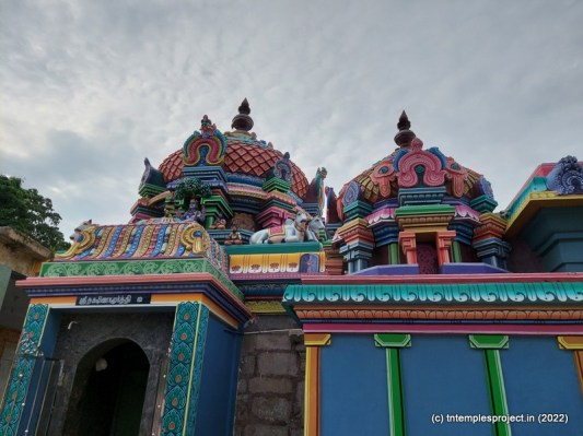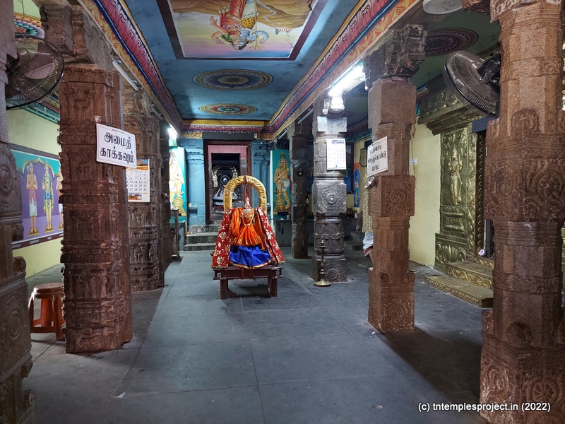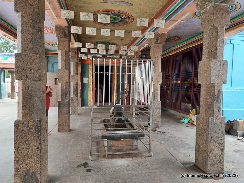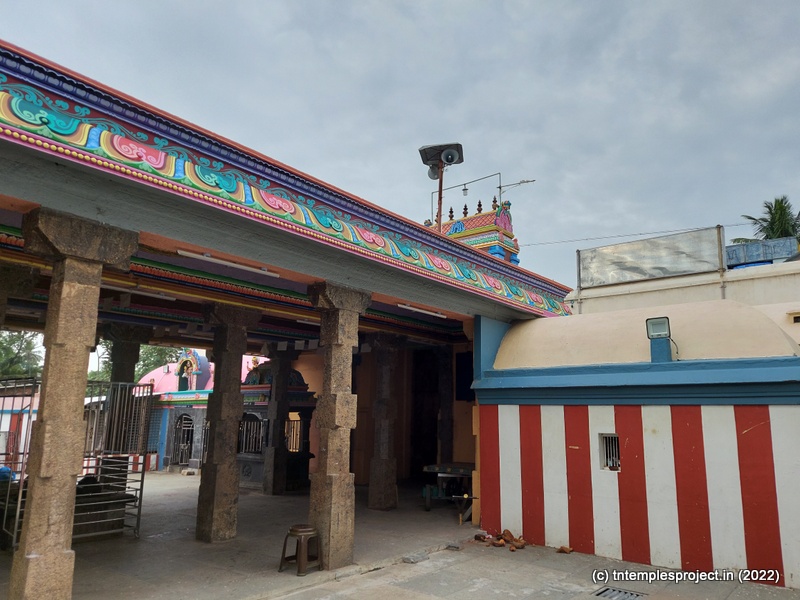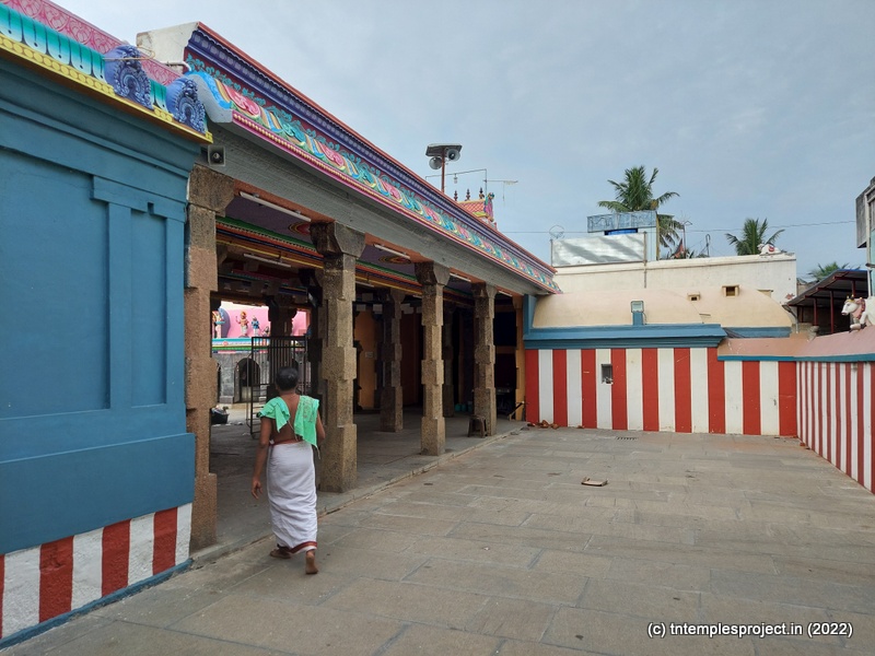 While the main east-facing entrance abuts the Kumbakonam-Mannargudi main road, that is usually closed. Instead, there is a small passage on the southern side, through which the temple is accessible.