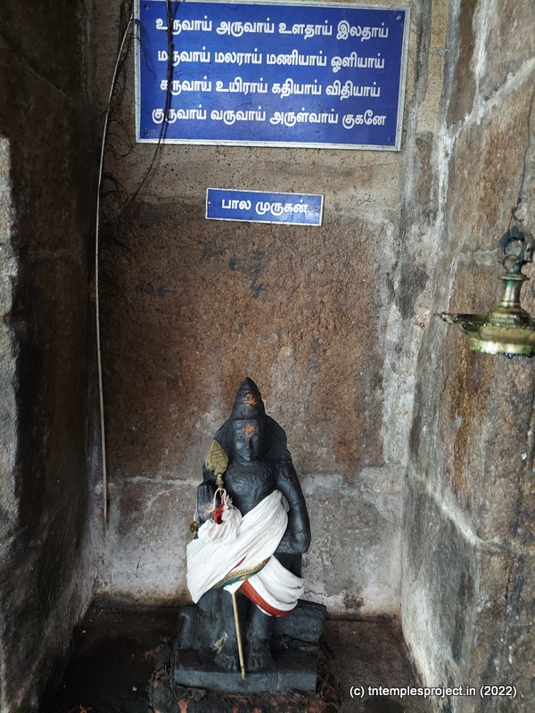 According to the sthala puranam here, a Chola king of the region accidentally shot an arrow which struck and killed the sage, Heranda maharishi, and therefore he was afflicted with Brahmahathi dosham. Fortunately, the king realised that the nearby Tiruvidaimaruthur temple had its own sthala puranam according to which Varaguna Pandyan was relieved of the same dosham that had attached to him. However, the only thing the king could readily see from this place was the gopuram of the Mahalingeswarar temple, and so the king worshipped the gopuram from the spot. A few days later, when the king was traveling to nearby Vittalur, he realised that the dosham had left him. Filled with gratitude to Lord Siva for having removed the affliction, the king later built a temple at this spot.