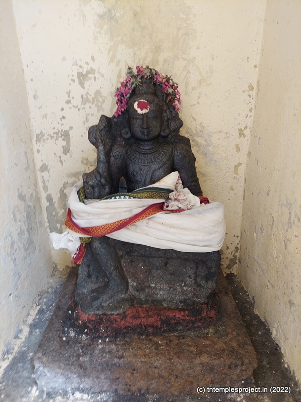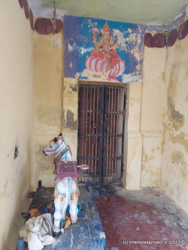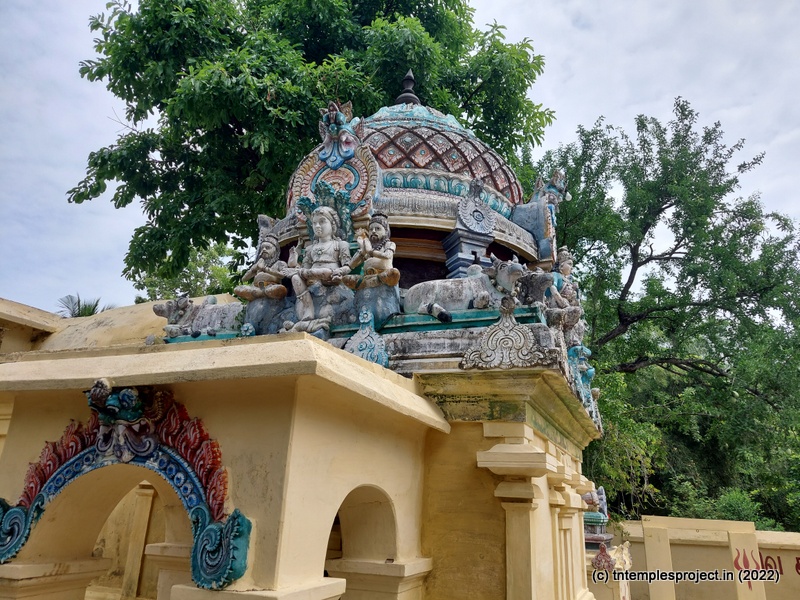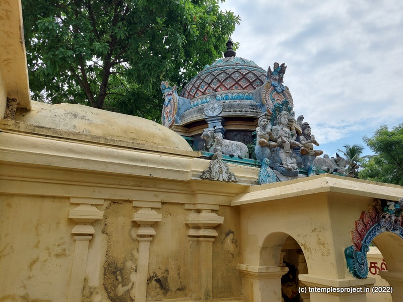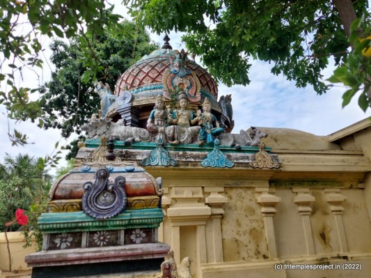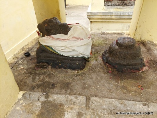 Although the temple faces east, the main entrance and gopuram are on the southern side. As one enters the temple, is the maha mandapam with the the Amman shrine is straight ahead, and the east-facing moolavar on the left. In front of the maha mandapam on the east is a bali peetham and Nandi. The unique iconography of Nandi itself clearly speaks to the age of this temple.