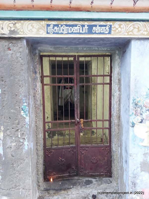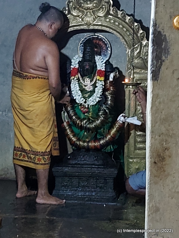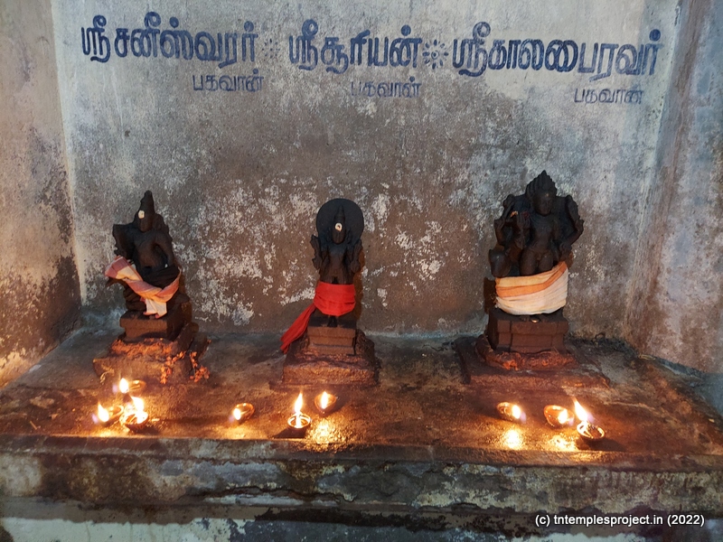 கோஷ்டங்களில் தட்சிணாமூர்த்தி, லிங்கோத்பவர் மற்றும் துர்க்கை உள்ளனர் (சுவாரஸ்யமாக, பிரம்ம கோஷ்டத்திற்கு முன்பே துர்க்கை ஒரு கோஷ்டத்தில் வைக்கப்பட்டுள்ளார், மேலும் அவளுக்கு கர்க்கா தேவி என்று பெயரிடப்பட்டுள்ளது; இங்குள்ள கோஷ்டத்தில் பிரம்மா இல்லை). பிரகாரத்தில் விநாயகர், முருகன் (அவரது துணைவியார் இல்லாமல்), கஜலட்சுமி மற்றும் சண்டிகேஸ்வரர் உள்ளனர். தனி நவக்கிரகம் சன்னதி உள்ளது. மகா மண்டபத்தின் வடகிழக்கு பகுதியில் சனி, சூரியன் மற்றும் பைரவர் உள்ளனர். முழு கோயிலும் ஒப்பீட்டளவில் நன்கு பராமரிக்கப்படும் நந்தவனம்/தோட்டத்தின் நடுவில் அமர்ந்திருக்கிறது, இது வழிபாடு மற்றும் சிந்தனைக்கு இனிமையான சூழ்நிலையை வழங்குகிறது.