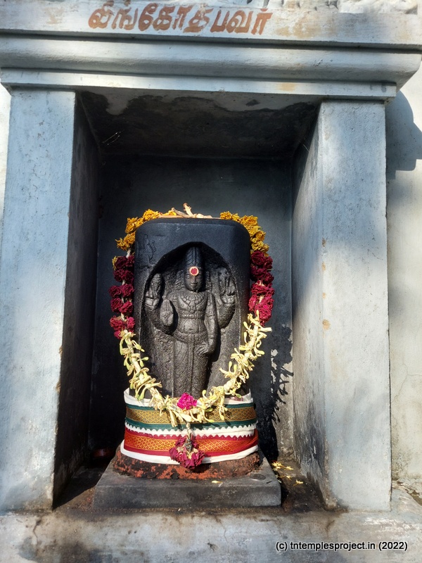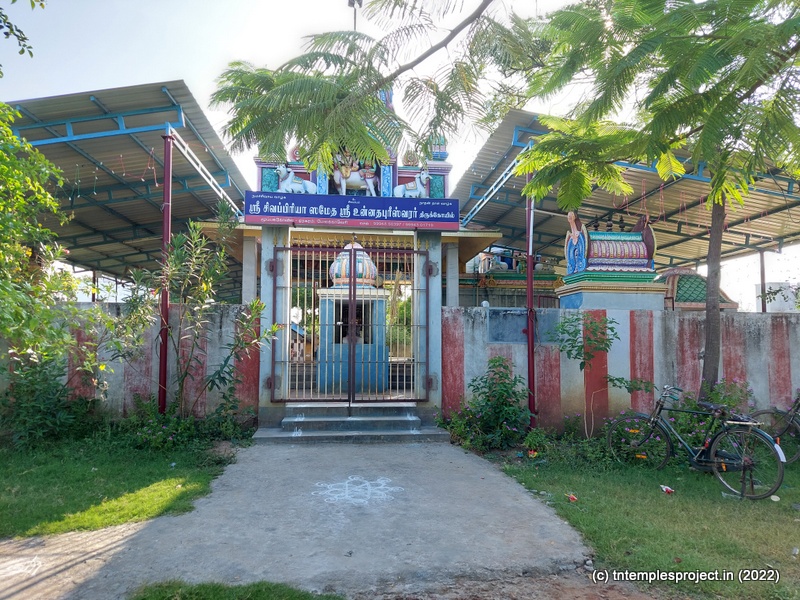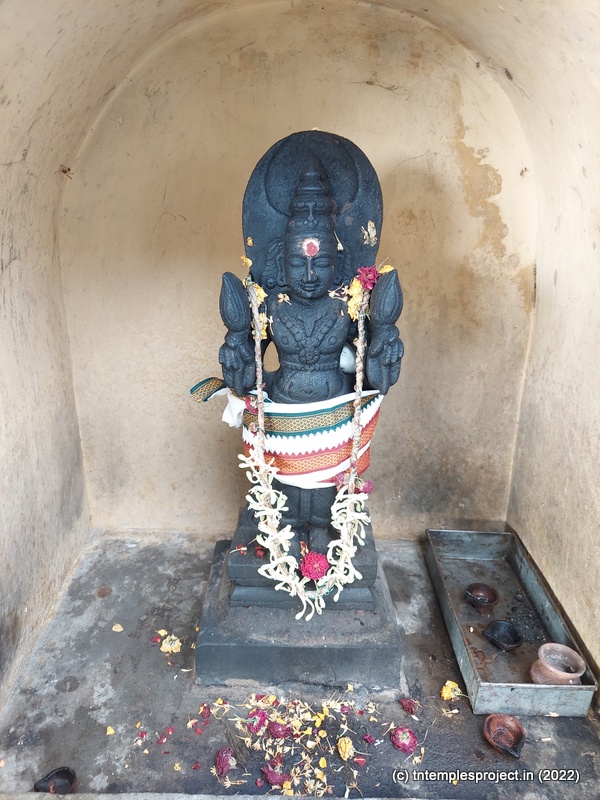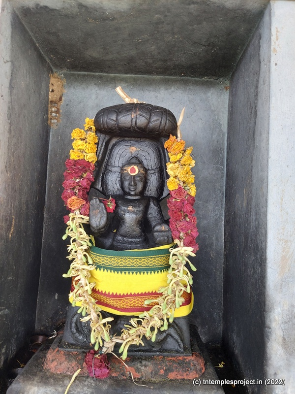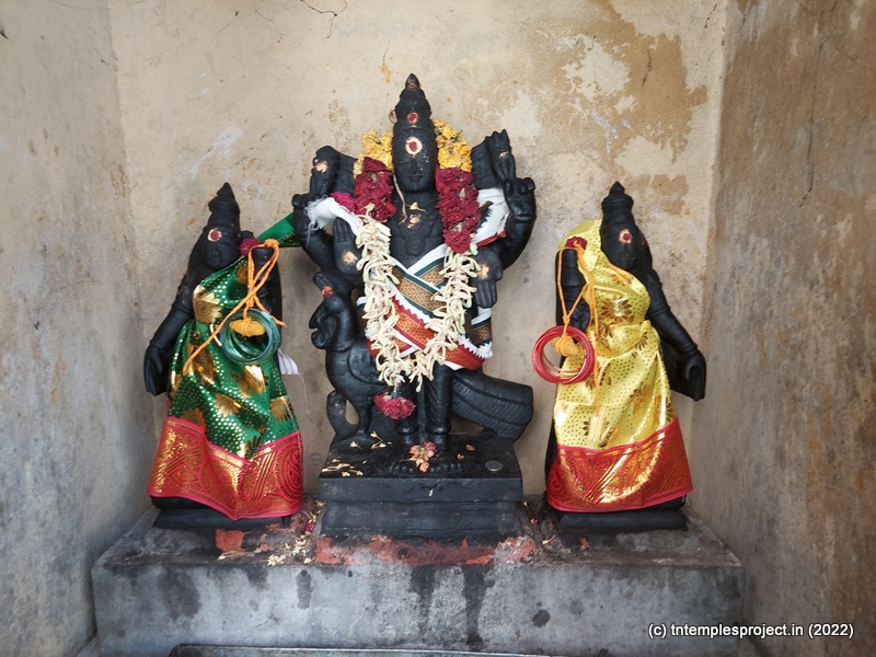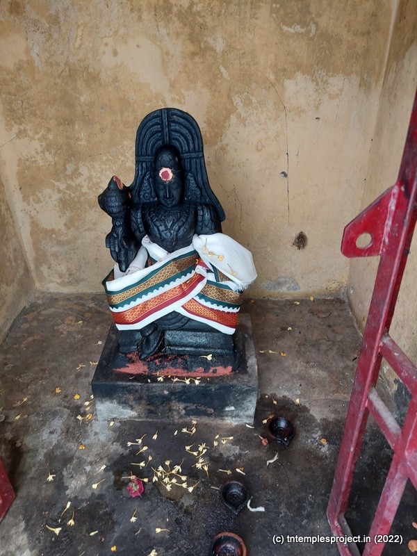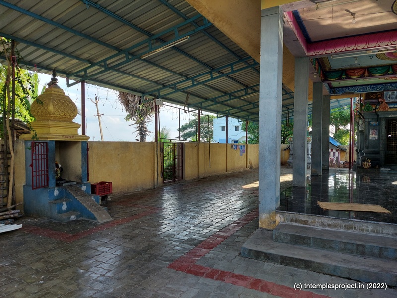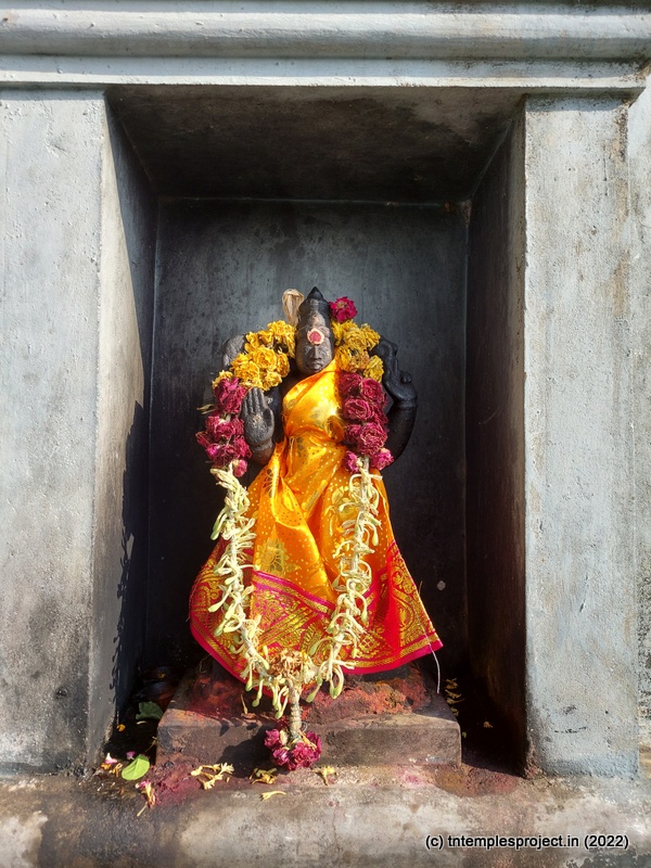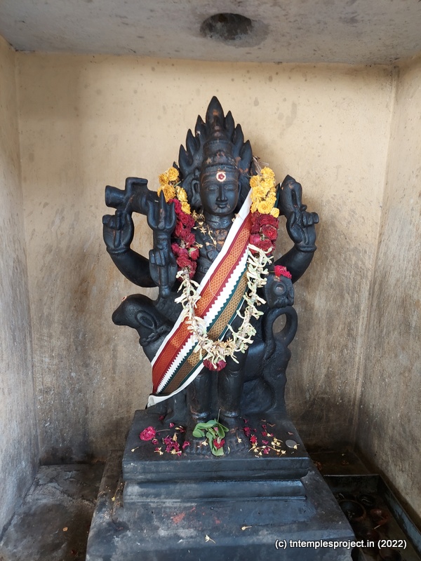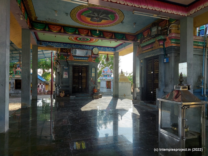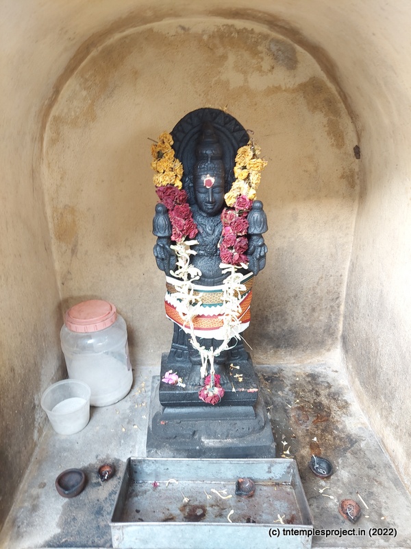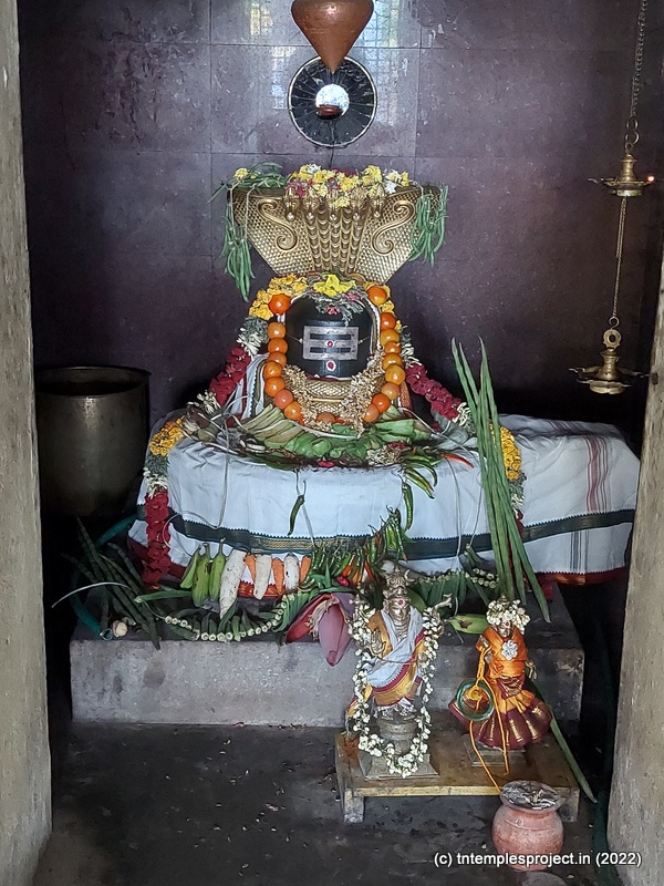 கிழக்கு நோக்கிய இக்கோயிலில் துவஜஸ்தம்பம் இல்லாத நிலையில், கோயிலுக்குள் நுழையும் போது பலி பீடமும் நந்தியும் உள்ளன. ஒரு மகா மண்டபம் கர்ப்பக்கிரகம் மற்றும் அம்மன் சன்னதியை உள்ளடக்கியது. கர்ப்பகிரகத்தின் நுழைவாயில் விநாயகர் மற்றும் வழக்கத்திற்கு மாறாக, ஆஞ்சநேயர் (இது கோயிலின் அசல் அல்ல என்பதைக் குறிக்கிறது).