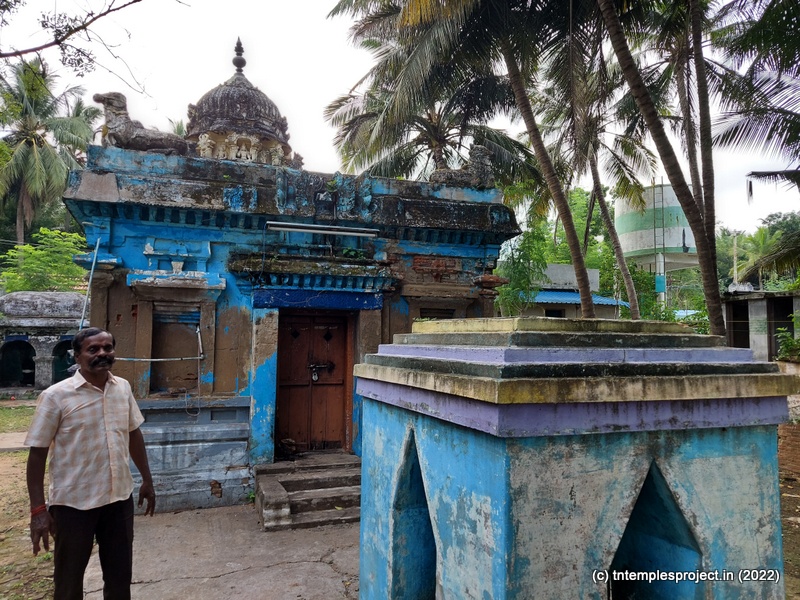 Sri R Vadivelu, a retired member of the police force, lives on the street opposite the Perumal temple, and can be reached at 9944130881. He was instrumental in organising the kumbhabhishekam of both the Perumal and Sivan temple of this village.