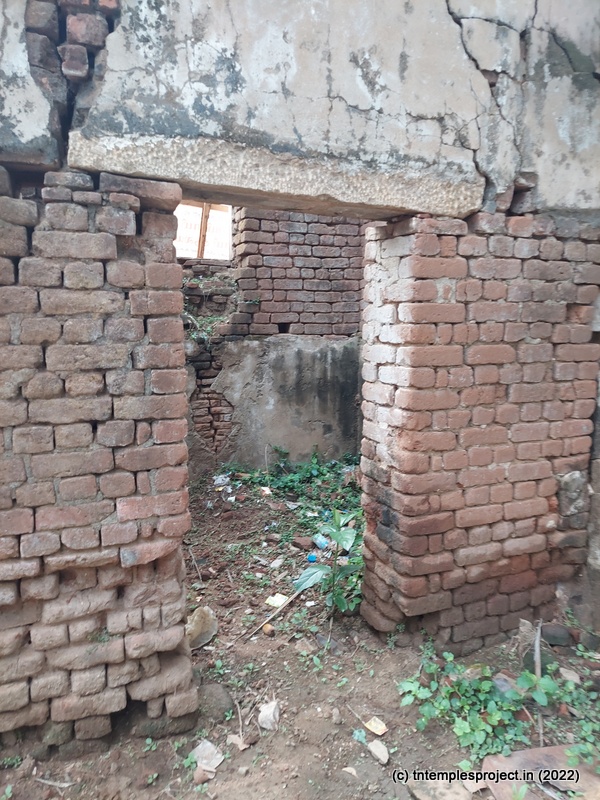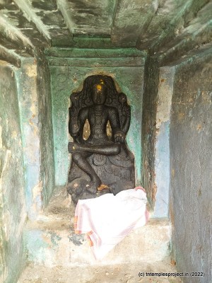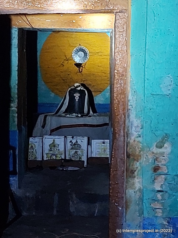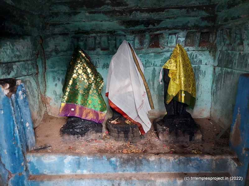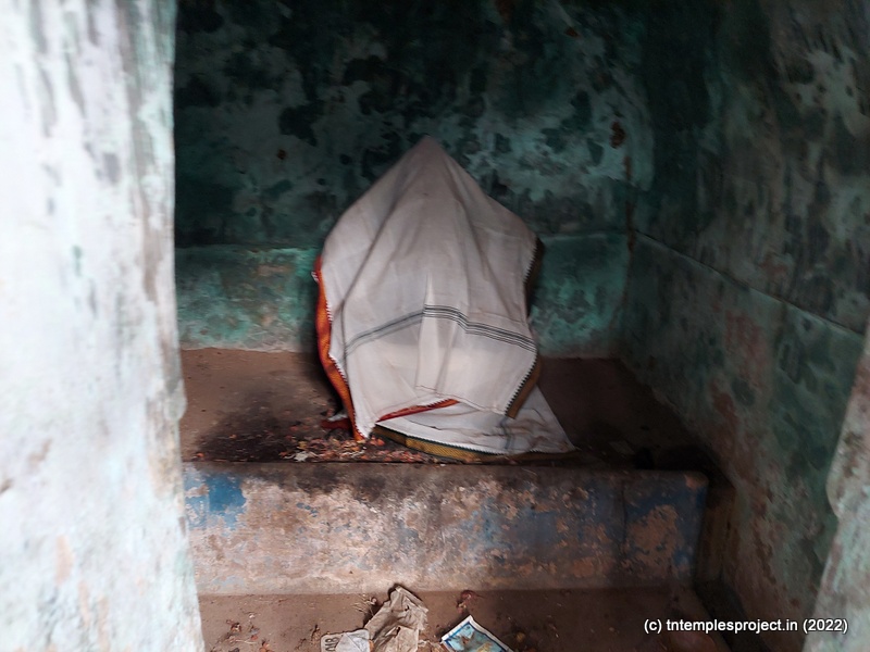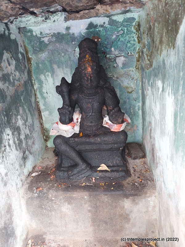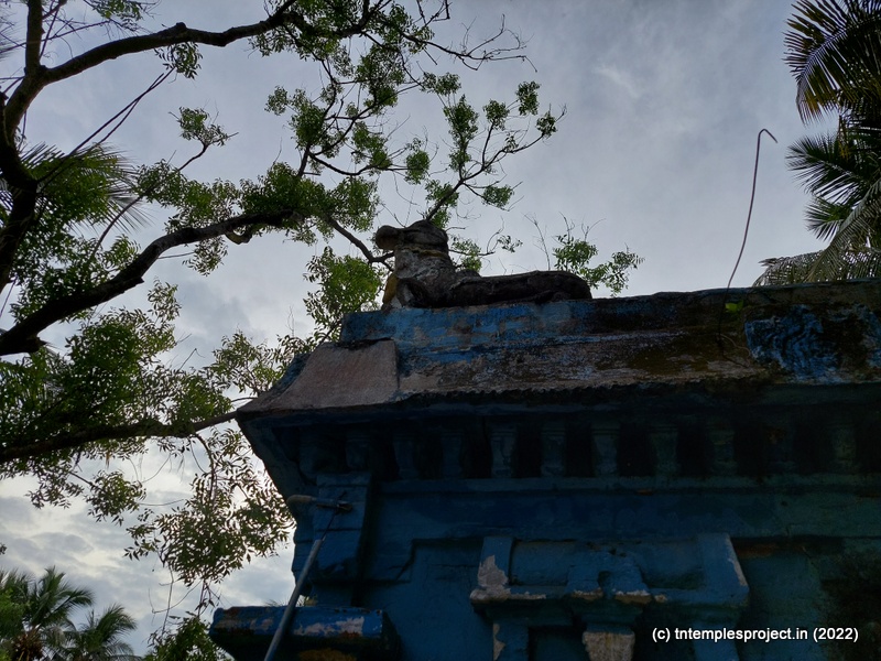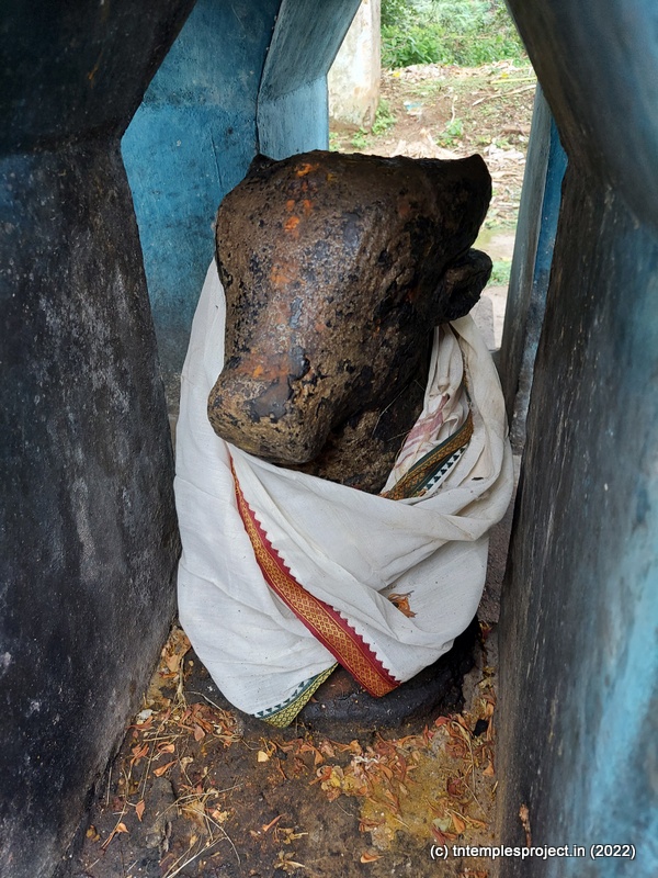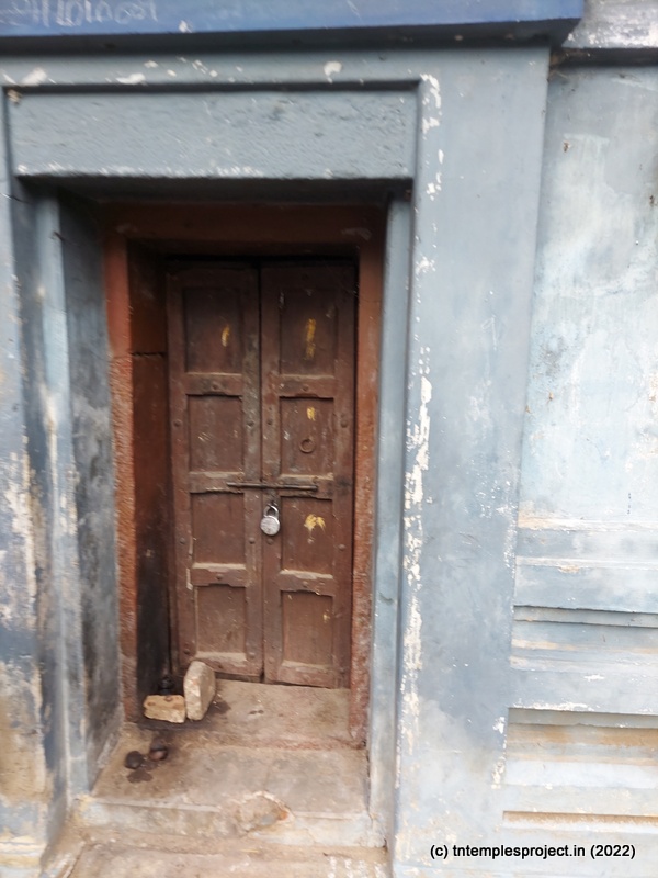 The moolavar – Jagannatha Easwarar – faces west. There is however no entrance from the west, as a pond is located on that side. Hence, the entrance to the temple is from a small gate on the eastern side. An ancient Nandi faces Lord Siva from west to east. Inside the maha mandapam, is a separate south-facing shrine form Abhirami Amman.